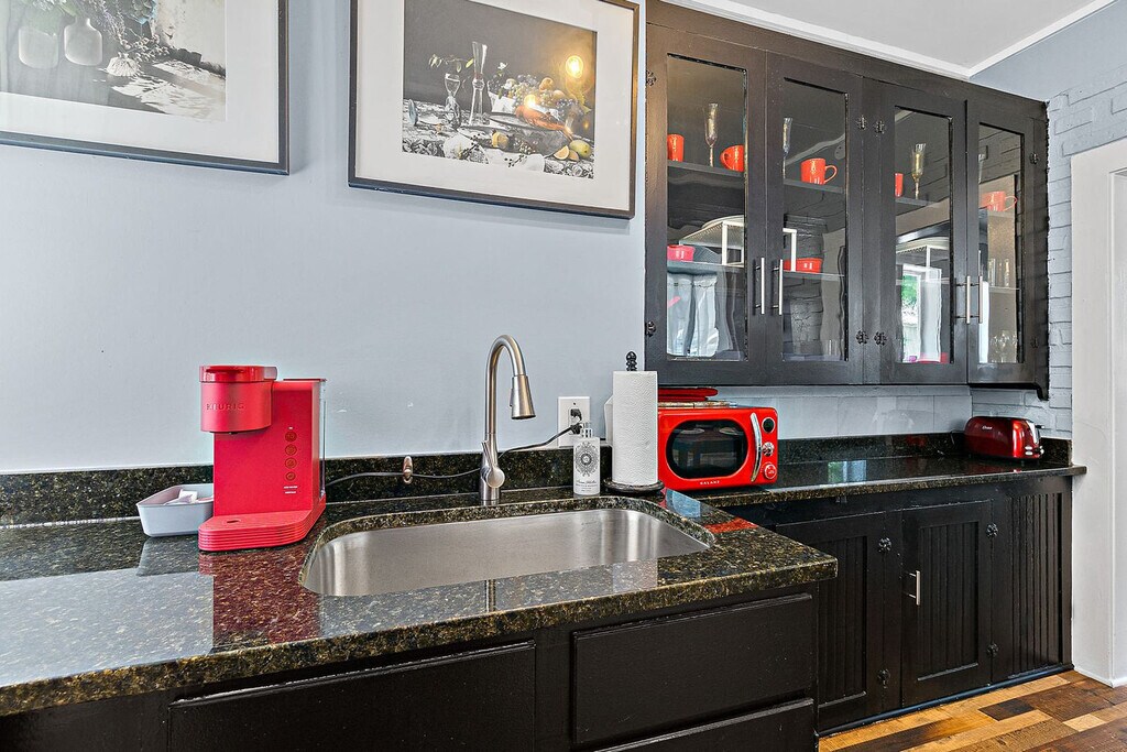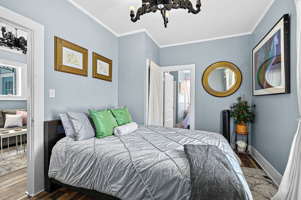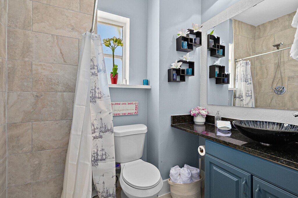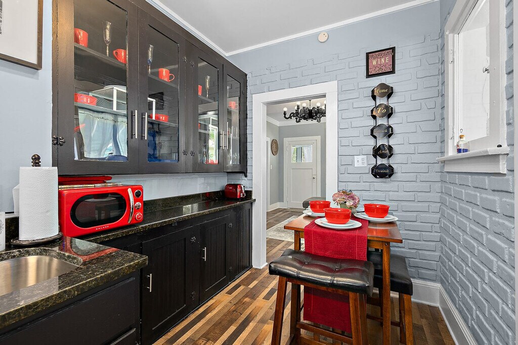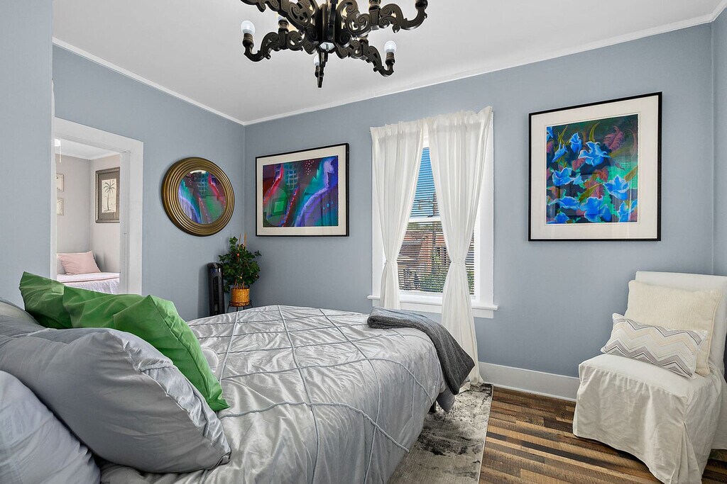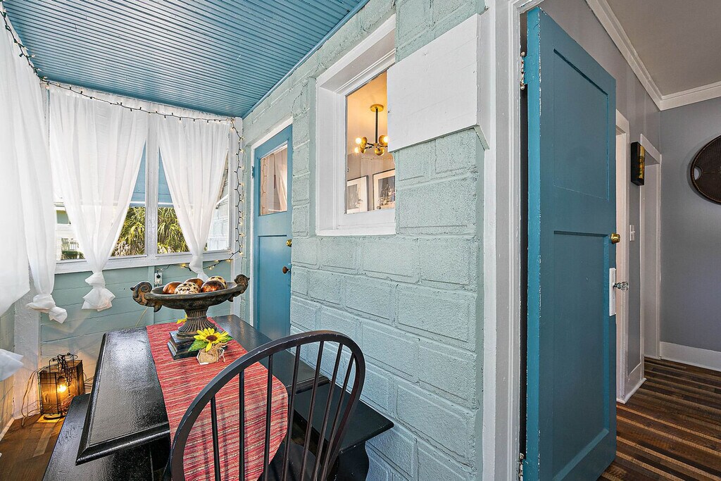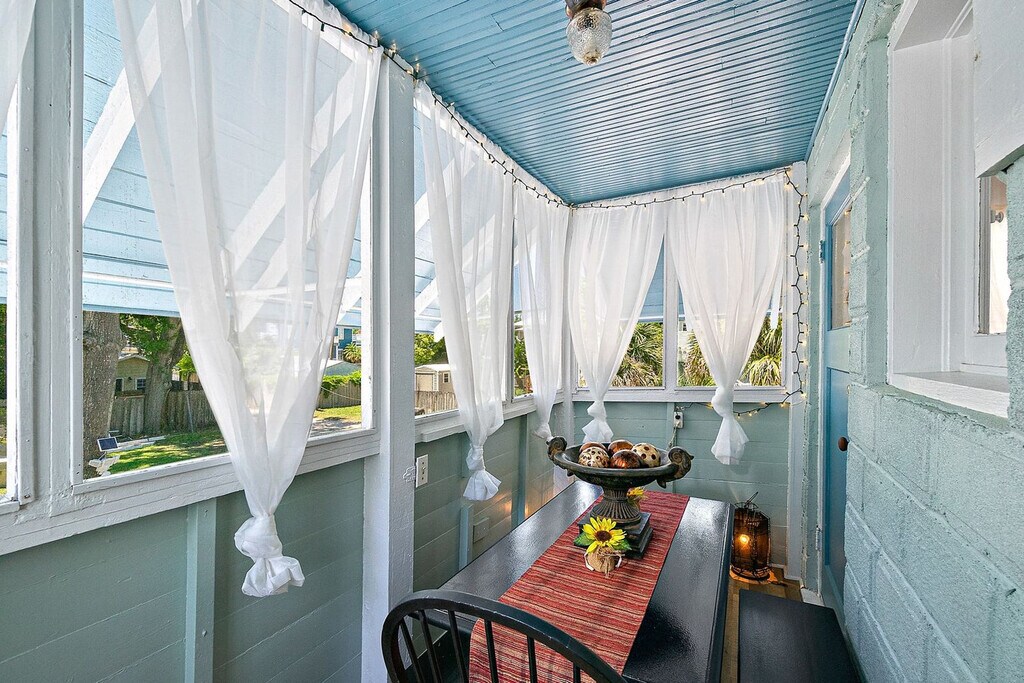 Feel at home in this charming apartment with retro vibes situated in the Uptown neighborhood of St. Augustine. Just a short walk to many top attractions, bars, and restaurants, you can park your car and explore the Oldest City on foot. This apartment is located above a garage behind a multi-family home. Swoon over this chic apartment, recently renovated with modern updates while maintaining its historical charm. After walking up the stairs, you'll be greeted by the first of two balconies perfect for relaxation. The spacious living room invites you to a homey stay, complete with a smart TV ready to stream your favorite Netflix shows. The galley kitchen is fully equipped with utensils, cookware, plates, and glasses for quick meals, and features retro-style appliances including a microwave, Keurig, and toaster. Enjoy meals inside or on the balcony with an additional dining set. Rest easy in the two cozy bedrooms, each with a queen bed, and refresh in the full bathroom with a walk-in shower stocked with essentials and fluffy white towels. Off-street parking for two vehicles is provided at the back of the home. Located on Rohde Ave, this home is just a few minutes' walk to many shops, restaurants, and the downtown area. About a 5-10 minute walk to the Downtown Historic area and top attractions such as Ripleys and Castillo de San Marcos. A convenience store is nearby for stocking up on drinks and snacks, and amazing places to eat and drink are just a short walk away. Quiet hours begin at 10 pm and all noise must be minimized at this time. Window AC units are installed for heating and cooling, as there is no central AC. The minimum age to book is 21, and the primary guest must be present for the duration of the stay. No parties are allowed, and any guests outside of the reservation must vacate the property during quiet hours. A security camera is installed at the front door, and tampering with it may result in reservation cancellation. No pets are allowed, and no smoking or vaping is permitted on the property. Late check-outs and early check-ins require prior approval, and guests who stay past checkout time will be charged an additional fee of $50 per hour. Illegal drugs and underage drinking are strictly prohibited. The home is not child-proofed, so parents with young children use it at their own risk. [SI]