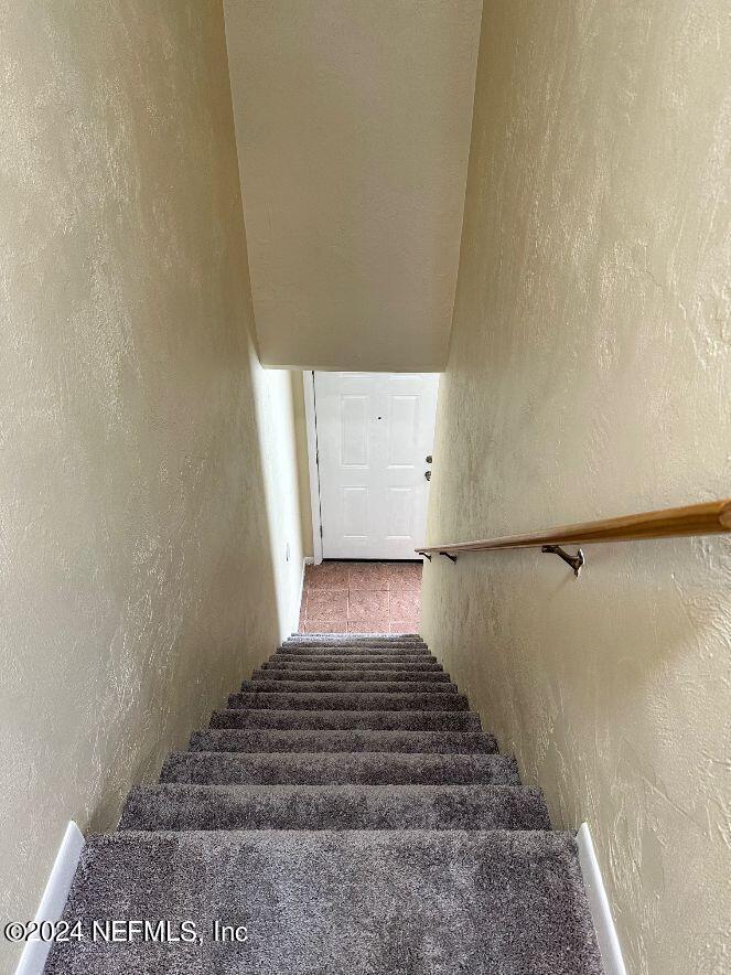 Spacious 2 bedroom 1.5 bath unit in St. Johns County. Nice sized tiled living room great for entertaining. Dining room has tile floors. Kitchen has 42'' cabinets,electric stove,fridge,microwave and dishwasher. Half bath located downstairs with washer/dryer hookups. Upstairs you will find a nice sized master bedroom with walk-in closet,house bath with tub/shower and 2nd bedroom. No pets permitted. Rent includes lawn care. Tenant must also enroll in the Resident Benefits Package. MLS# 2140066