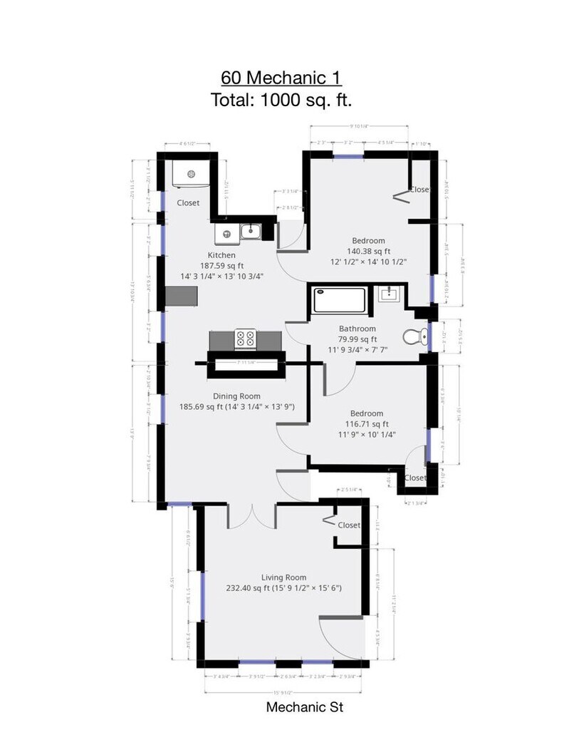 Price shown is total price based on community-supplied monthly required fees. Excludes user-selected optional fees and variable or usage-based fees and required charges due at or prior to move-in or at move-out. View Fees and Policies for details. Price, availability, fees, and any applicable rent special are subject to change without notice.Model: 1 - 60 Mechanic St$2,2952 Bedroom, 1 Bath, 1050 sq ftAvailable Now![]()