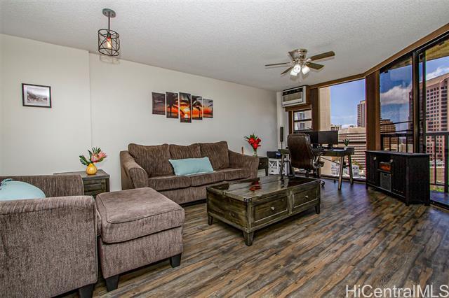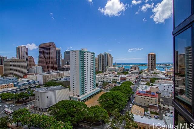 AVAILABLE MAY 1ST, FULLY FURNISHED!! Welcome home to Honolulu Tower! This newly renovated, 18th floor FURNISHED unit boasts city and partial ocean views from the lanai, 2 bedrooms and 2 full bathrooms, assigned and covered parking stall, vinyl plank flooring, in unit washer and dryer, and other tasteful upgrades. Honolulu tower is centrally located in downtown Honolulu and a short walk to Chinatown, Kakaako, a variety of restaurants and bars, shopping, businesses, and so much more. Come and enjoy all that downtown Honolulu has to offer in this move-in ready unit! Secure building with pool and BBQ areas, pets okay, water, basic cable, and internet included in monthly rent.