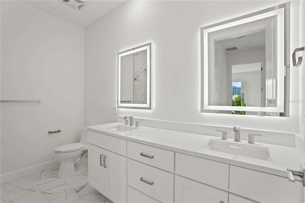 LUXURY CONDO NOW AVAILABLE FOR LEASE! Welcome to Castille Urbana,a new modern residence in the heart of St. Petersburg. This beautifully appointed Sovana model offers 2 bedrooms,2 bathrooms,and a spacious open-concept layout with 9-foot ceilings. Oversized,hurricane-rated windows and a large balcony door flood the home with natural light,creating a bright and inviting living space. The gourmet kitchen showcases BOSCH stainless steel appliances,quartz countertops,solid wood cabinetry,under-cabinet lighting,tiled backsplash,and a large island with pendant lighting—perfect for dining and entertaining. A flexible bonus room off the dining area is ideal for an oversized walk-in pantry or additional storage. A separate laundry room offers a full-sized washer and dryer,added shelving,and a convenient drip-dry bar. The split-bedroom layout provides privacy,with both king-sized bedrooms featuring walk-in closets and private linen closets. Both bathrooms are elegantly finished with Carrara marble-inspired tile,quartz countertops,lighted vanity mirrors,and frameless glass shower doors. Enjoy peaceful courtyard views from your private balcony. Amenities include gated access,GARAGE PARKING next to the elevator,a fitness center,community room with kitchen and TV,outdoor patio,and dog run with washing station. Just blocks from Central Avenue,the Edge District,Publix,Johns Hopkins,Orlando Health,and quick access to I-275—THIS LOCATION OFFERS EVERY CONVENIENCE FOR URBAN LIVING and is truly the ultimate downtown lifestyle! MLS# TB8480097