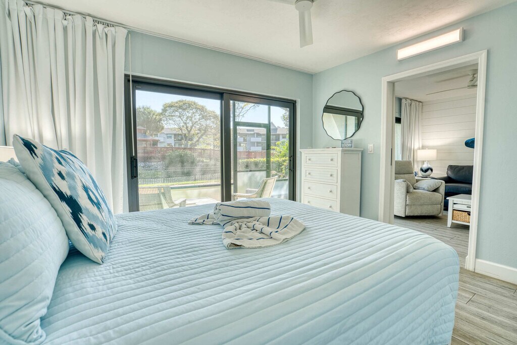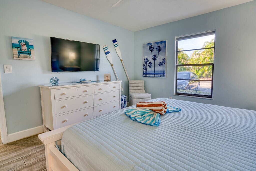 Feel at home in this unit located in a 13-acre subtropical oasis in Naples, FL, close to downtown and a short drive from 9 miles of beaches. This condo features a king-size bed, a queen-size bed, and a pull-out sofa, along with 2 full-sized bathrooms. The first-floor lanai conveniently allows access to all the amenities at Park Shore Resort without stairs or an elevator. This condo is designed with comfort and style in mind, providing a perfect retreat for relaxation. It features a stackable washer and dryer for guest use. There is casual indoor dining for 4, and you can enjoy outdoor meals on the lanai, which also has 2 lounge chairs. Parking is available just outside the front door with plenty of guest parking. On-site amenities include a heated pool, a restaurant serving lunch and dinner equipped with a full bar, a BBQ deck with a Gazebo, tennis and pickleball courts, a fitness center, lakefront walking paths, and an island gazebo with barbecue grills. Centrally located yet secluded on lush, private grounds, Park Shore Resort is the ideal Naples, Florida vacation spot for relaxation and comfort. The resort is walkable to some local shopping, dining, and multiple grocery stores and about a 12-minute drive (4.4 miles) to downtown Naples. Horizon Way (1.8 miles) and Seagate/North Gulfshore Beach (2.0 miles) accesses are the closest beaches to the resort. Another favorite spot is Venetian Village (1.2 miles) with waterside shopping and dining. Waterside Shops (0.9 miles) is a luxury shopping mall just a few miles away, and you can enjoy nightlife or a movie at The Mercato (3.9 miles) or the Pavilion (3.7 miles). Quiet hours are between 10 PM and 8 AM. Please do not rearrange the furniture. Report any damage or malfunction to the trusted partner right away so that they can repair or replace the damaged item. A maximum of 6 guests are allowed per reservation. Occupancy is strictly enforced. Registration Number: Florida state permit number: #CND2103205 [SI]