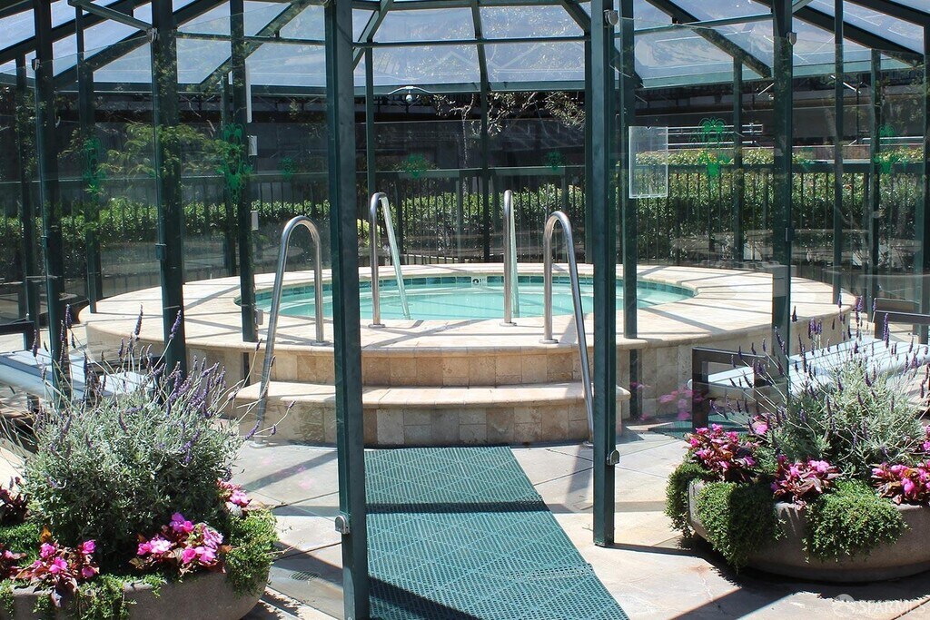 ID#1855: This light-filled condo is situated on the south side of the complex, facing the interior courtyard with pool and hot tub. The spacious living/dining room offers a wall of bookshelves, creating a cozy and functional area for relaxing or entertaining. Step out onto your private balcony and enjoy pool and city views. This outdoor space is a delightful retreat whether it's morning coffee or the evening wind down. The kitchen features tile counters and stainless-steel appliances (dishwasher, electric range) making cooking and meal prep a breeze. Large bedroom is a serene space to rest and recharge with a generous closet. The updated bathroom includes a shower over tub. Attractive engineered wood floors throughout. Opera Plaza offers an array of amenities, including a heated pool, hot tub, fitness center with locker rooms, saunas, racquetball court, club room, 24/7 security, multiple elevators, cinema, restaurants, and shops on the building's Plaza Level. With a Walk Score of 98, you're steps away from cultural gems like the Ballet, Opera, Symphony, and Jazz Center, as well as Hayes Valley's vibrant shopping and nightlife. 96 Bike Score, and transit options are abundant with a Transit Score of 100, including nearby BART, MUNI, and Tech Shuttles. Additionally, monthly parking is available for an extra cost through building management. MLS # 426102411