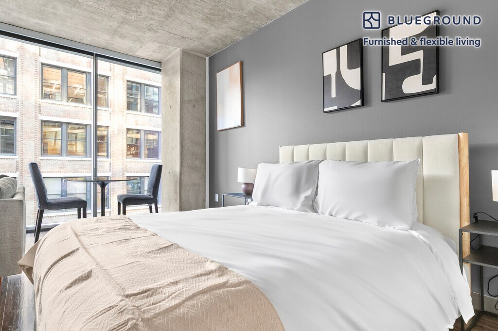 Show up and start living from day one in Chicago with this sophisticated studio Blueground apartment. You’ll love coming home to this thoughtfully furnished, beautifully designed, and fully equipped West Loop Gate home. (ID #CHI1387) The advertised rate of $2,770/month is the lowest available price, based on a 12 month(s) stay with a move-in date of April 1, 2026. Rates vary depending on the duration of stay, season, and other parameters. For exact pricing and additional pricing components, please visit our website and enter your desired move-in and move-out dates. The rate is applicable when billed upfront; it can be higher if billed in multiple payments. Brokers are welcome to reach out. Were you looking for an unfurnished lease? Try Blueground instead and upgrade from unfurnished to furnished living: - Furnished at rates comparable to unfurnished - No setup or furniture costs - save thousands - Move-in ready - save time, just bring your suitcase Designed with you in mind As with any Blueground apartment, you’ll find a thoughtfully designed space complete with beautiful furniture and a fully equipped kitchen in this studio property. And, thanks to our superior quality mattresses, luxury linens, and towels, you can relax knowing you’ll always feel comfortably at home. When you’re ready for some fun, you can take in the Chicago vibes or bring the entertainment to you with the premium wireless speaker or smart TV. This apartment also offers in-apartment laundry. Sleeping arrangements Queen Bed, 63in/160cm Amenities Building amenities unique to this studio apartment include an on-site: - BBQ Area - Doorman - Dryer - Elevator - Swimming pool - Washing machine - Pets allowed Arrival and ongoing support The entire apartment is yours to enjoy! Throughout your stay, you’ll have access to our Client Experience team through the Blueground App. You can schedule additional cleanings, submit maintenance requests, and view our neighborhood recommendations with just a few taps. We’ll share all details upon confirmation of your stay. Other things to note Building amenities may have an extra cost. This Blueground apartment has flexible lease options, allowing you to book it for one month, a year, or more. Pets are welcome, though weight limits and breed restrictions apply and may incur fees. We take great pride in ensuring every photo displayed is shot in our own units with our actual furnishings. That said, we regularly refresh our decor and furniture arrangement, which may differ from what’s pictured. Also note - This apartment is in close proximity to a fire/police station, so you can expect noise from time to time - This apartment's central location means it can be noisy at times - This is a guarded building equipped with a doorman/concierge at all times [SI]
