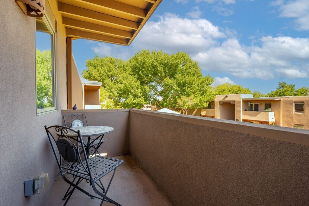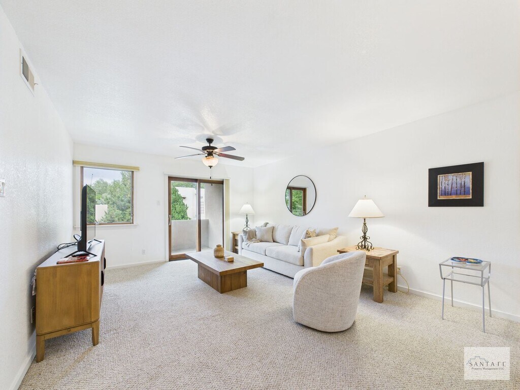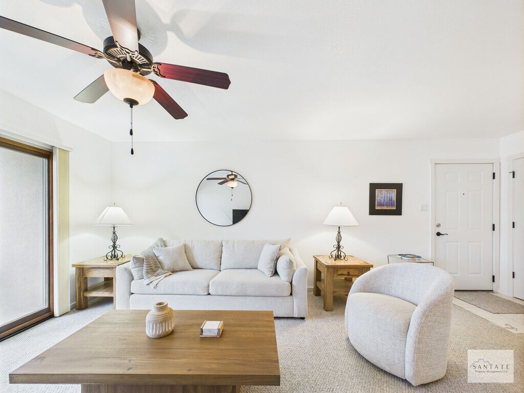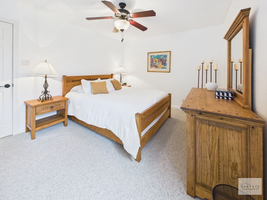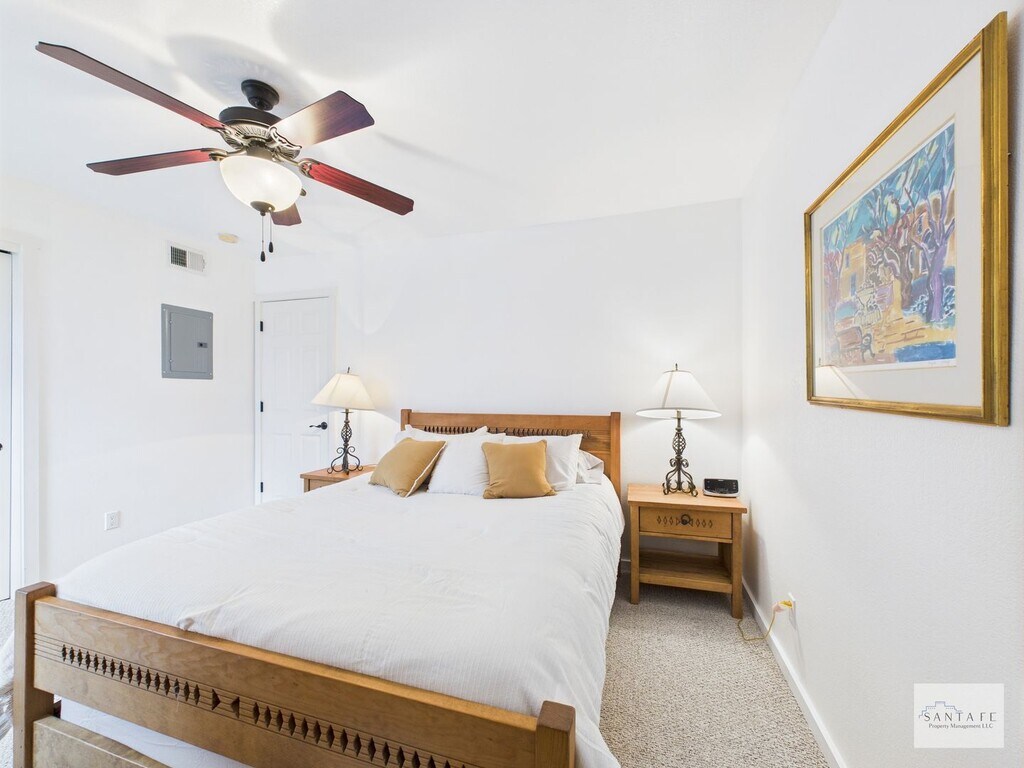 This is a gorgeous light and bright second level one bedroom unit. It has a fully equipped kitchen and all linens and towels. Other features include forced air heating, air conditioning, double vanity, deep jetted tub, stacked washer and dryer, carpet and tile flooring. Please contact Santa Fe Property Management for more information and to schedule a viewing of this property.