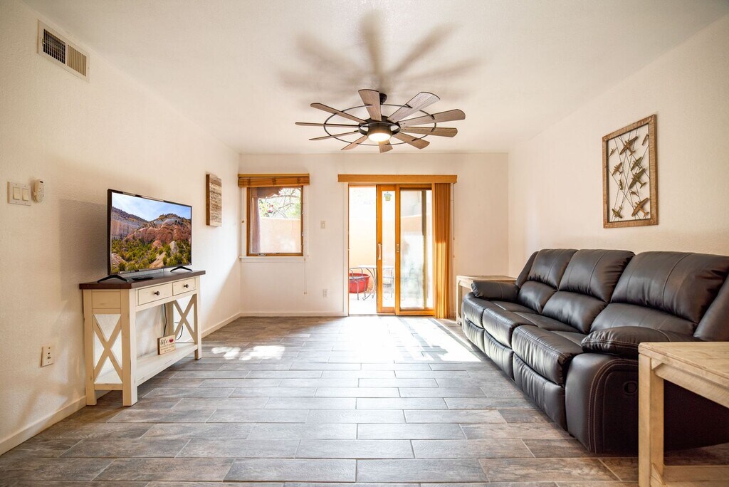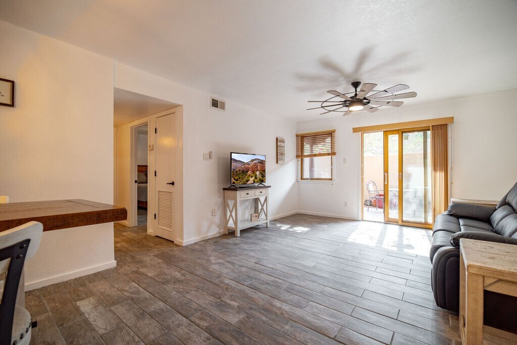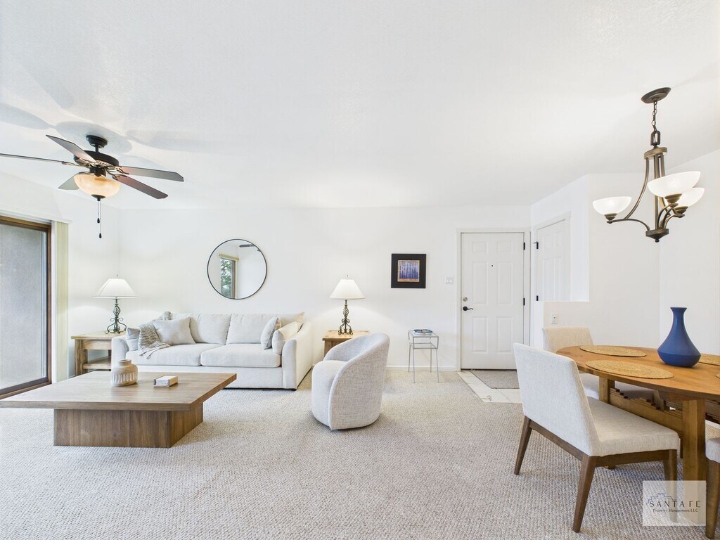This is a gorgeous light and bright ground level one bedroom unit that is in the process of being completely furnished with new furnishings. It will have a fully equipped kitchen and all linens and towels will be provided. Other features include forced air heating, air conditioning, double vanity, deep jetted tub, stacked washer and dryer, laminate wood and tile flooring. Please contact Santa Fe Property Management for more information and to schedule a viewing of this property.
