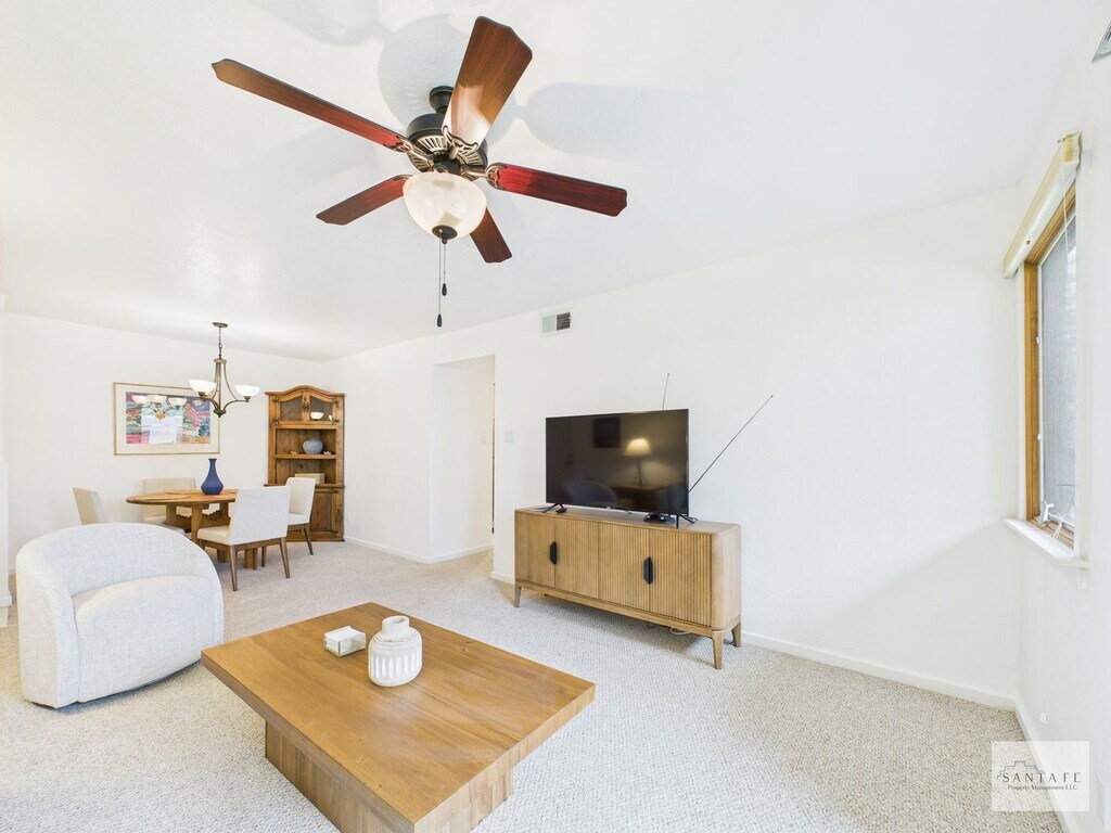 This fully furnished two bedroom, two bathroom unit is nicely decorated and furnished. The kitchen is fully equipped and this beautiful unit has a washer and dryer. Other features include forced air heating, air conditioning, a private patio off the living room and it is located to the back of the complex and is quiet. Please call Santa Fe Property Management to schedule a viewing today!