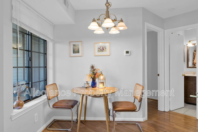 Ground-level Solarium model in Alexandria’s popular Manchester Lakes, featuring a private entrance, sunroom, and assigned parking just outside your door. Bright, corner-unit condo with an open, easy-flow layout in a well-maintained community. The main living space features warm wood flooring, large windows on multiple sides for abundant natural light, and a wood-burning fireplace that anchors the room. The updated kitchen opens seamlessly to the living and dining areas and includes a peninsula with seating, quartz countertops, stainless steel appliances, and ample cabinet space—ideal for both everyday living and entertaining. The dining area is set within a window-lined nook, creating a defined space while maintaining the open feel. Just off the living room, a sunroom with vaulted ceilings and oversized windows offers the perfect flex space for a home office or guest room. The primary bedroom is generously sized with hardwood flooring, great natural light, and a large mirrored closet. The full bathroom is well maintained with an updated vanity and lighting. Additional features include in-unit washer and dryer, neutral paint throughout, and a private covered patio at the entry—ideal for outdoor seating. Assigned reserved parking space #164 is located directly next to the building for easy, everyday access, with ample visitor parking available nearby without the need for a permit. Four-legged friends welcome—cats and dogs allowed with a refundable pet deposit. Tenant is responsible for electric, water, and sewer. Residents enjoy access to Manchester Lakes amenities including a community pool, fitness center, tennis and basketball courts, walking paths, playgrounds, and scenic green spaces—offering a balanced mix of recreation and everyday convenience. Ideally located just minutes from the Franconia-Springfield Metro, Springfield Town Center, Kingstowne shops and restaurants, and major commuter routes including I-495, I-395, and the Fairfax County Parkway. For more details, please call . All Allegiance Property Management residents are enrolled in the mandatory Resident Benefits Package (RBP) for $55.95/month which includes liability insurance, credit building to help boost the resident’s credit score with timely rent payments, up to $1M Identity Theft Protection, HVAC air filter delivery (for applicable properties), utility concierge service making utility connection and home service setup a breeze during your move-in, resident rewards program, on-demand pest control (optional), and much more! If a resident chooses not to have on-demand pest control, the RBP cost will be $40.95. More details upon application.