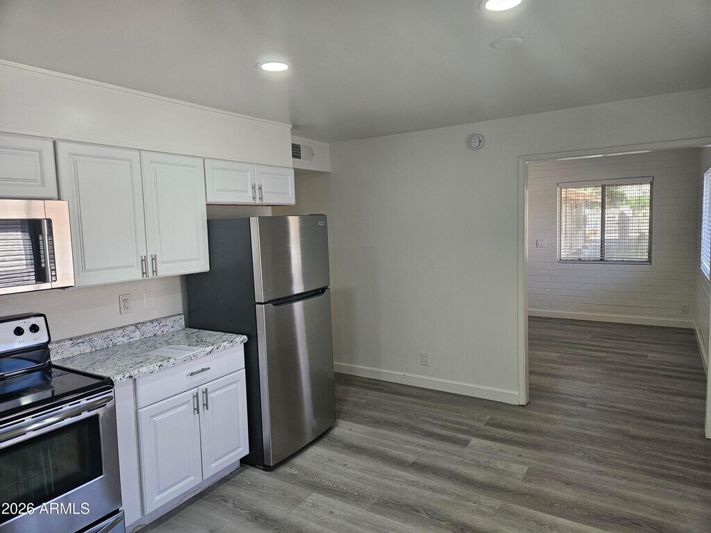 Huge 2 bedroom,1 bath unit in Phoenix! Private backyard! Open floor plan with charming kitchen with stainless steel appliances! Neutral interior with new laminate flooring throughout! 2 generously sized bedrooms + full bath! . Washer/dryer in the unit. Pets OK! Nice phoenix location,close to I17 freeway access for easy commute! Assigned covered parking space. MOVE IN SPECIAL! Not an Airbnb or Corporate rental opportunity! Tenant is responsible for all utilities. Tenants to verify all important facts prior to lease signing.