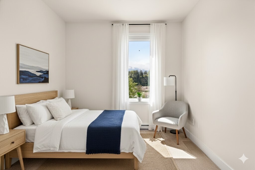 Welcome to Yearling, a modern rental community on Tzeachten First Nations Land, located in Chilliwack's Iron Horse neighbourhood. This welcoming community offers studio, one, and two-bedroom condos with beautiful mountain views. Yearling Building – Pet-Friendly Options Available This 1-bedroom, 1-bathroom apartment offers 613 sq. ft. of thoughtfully designed living space, perfect for modern lifestyles. Features include: 1 bedroom, 1 bathroom Full-size Whirlpool appliances In-suite washer & dryer Laminate flooring throughout, carpeted bedroom Tile bathroom flooring Spacious balcony Apply now — these units won't last long! Pet Policy: Select pet-friendly units available. Pet approval varies by owner. A pet deposit equal to one month's rent applies. Please note: units are located on Tzeachten Land and are not subject to the Residential Tenancy Act. Photos may not be of exact unit — AI staged images