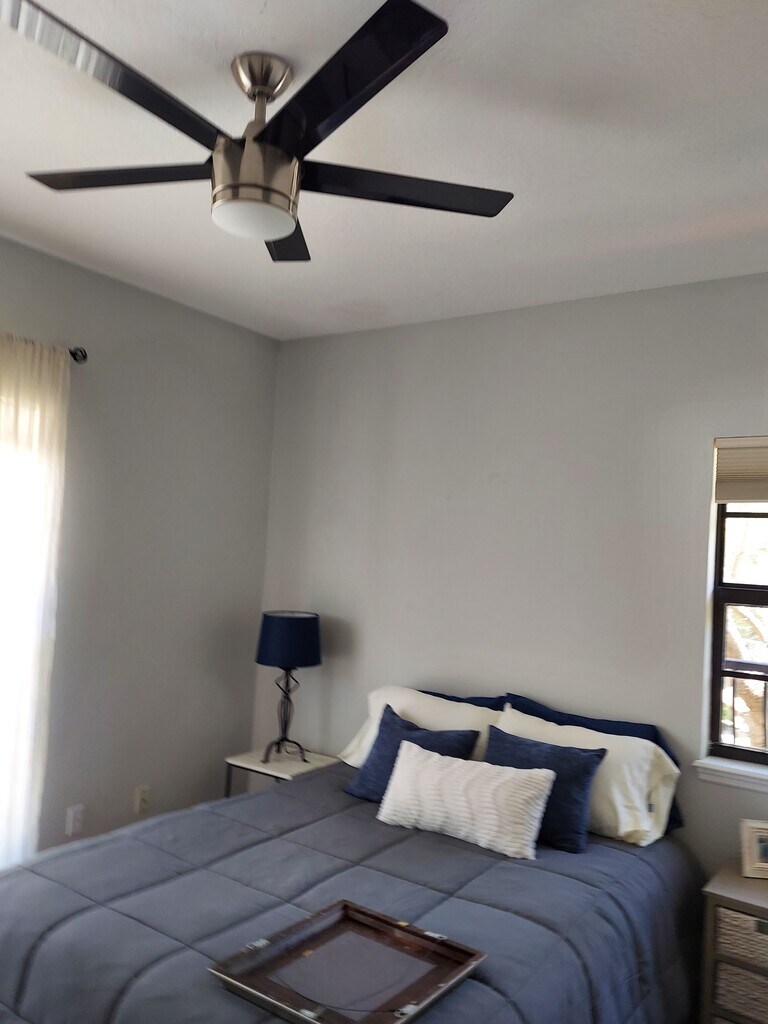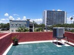 Spacious Townhouse 1555 square feet interior space plus a private 580 square feet outdoor living space rooftop terrace. It has 3 levels of living space to enjoy. It's located in this great central downtown location. This is the end townhouse. It is the only unit with extra natural light from side windows. Only 3 blocks to Johns Hopkins All Children's Hospital, Publix, 4 blocks from specialty shops and restaurants on Central Avenue. Rowdies Soccer, St. Petersburg Pier, and museums are all in walking distance. The first level features a living room 14 x 16 feet with a hardwood floor, LED ceiling fan, and bar. The tiled kitchen 10 x 11 feet has granite countertops, stainless stainless steel refrigerator, microwave, dishwasher, disposal, and IKEA Island with storage for pots and pans and seating for 2, full size washer/ dryer, modern style 1/2 bathroom. The dining room 15 x 16 feet has hardwood floors, and a modern IKEA light fixture. The second level master bedroom 14 x 15 feet, has laminate flooring, fan, and features a Juliet balcony, 2 closets, TV nook, and has an attached bathroom with tub and shower, LED lighting, and storage closet. The guest bedroom 12 x 15 feet has laminate flooring, LED fan, 2 closets, and attached bathroom with a tub and shower. Extra storage is available by the spiral staircase on the second level. The 3rd level outdoor living space has 580 square feet to enjoy with an enclosed sink, storage, electricity for a small refrigerator and plenty of space for your BBQ. You and your guests will enjoy the beautiful city views, and the city lights after sunset.