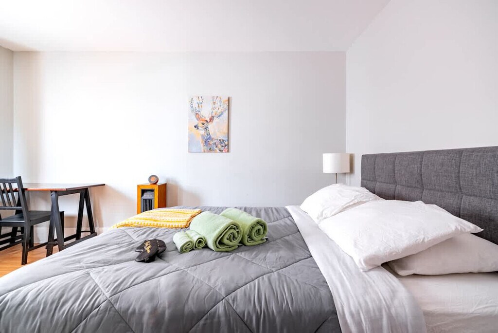 Feel at home in this centrally located 1-bedroom apartment in Columbus. This first-floor apartment offers easy and secure self-check-in and includes a living room, bathroom, and fully equipped kitchen. This apartment is filled with plants and upscale decor. It features a queen-size bed, a bathroom with complimentary toiletries, and a fully equipped kitchen with high-end appliances. Enjoy access to a smart TV with streaming apps and free Wi-Fi. A dedicated workspace is available. Private off-street parking is available for one car. If parking for additional cars is needed, street permit parking is available for $10 per additional vehicle for your entire stay. Pets are allowed for a fee of $40 per pet per night, up to a $600 cap per pet for the entire stay. The location is perfect for exploring Short North, with many restaurants and bars on North High Street. The apartment is a 5-minute walk to the Short North District and the Greater Columbus Convention Center, and it's right across from Goodale Park. Nationwide Arena Stadium, Ohio State University campus, and downtown Columbus are less than a mile away. The Kroger Food Market is also less than a mile away, and Nationwide Children's Hospital is an 8-minute drive away. CMH Columbus John Glenn Airport is a 10-minute drive, and Easton Town Center Shopping Mall is a 15-minute drive. There is easy access to major highways and COTA lines. Some city or neighbor noise is possible due to the central downtown location and shared wall with the neighboring unit. White noise machines and fans are provided in every room. Quiet hours are from 9 p.m. to 7 a.m. Breaking any house rule will result in a charge of $500 each, subject to a charge per occasion and per broken rule separately. Absolutely no plants in the apartment are to be moved for any reason. No loud music is allowed at any time. No parties, small gatherings, or events are allowed. Smoking, marijuana, firearms, illegal substances, or any illegal activity are not allowed on the property; smoking is allowed outside the apartment only. No additional unregistered guests are allowed. For any undisclosed pet, a $500 charge will apply. No photography or any commercial use is allowed on the premises without written permission. Furniture is not to be rearranged. Tampering with exterior surveillance, noise monitors, and smoke sensors will lead to immediate cancellation with no refund, as well as a $500 violation charge. Any late check-out will result in an additional charge of $300. Includes high-speed internet. This apartment is one of the quadplex. Each apartment is completely separate and private from one another, but there is a shared common door and front porch. Registration Number: 20233386 [SI]