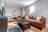 Feel at home in this 2-bedroom apartment in downtown Columbus. Perfect for business travelers, family getaways, and group stays, this apartment is located upstairs in a 4-unit building and requires climbing a stairway. This apartment is filled with upscale and vintage decor and features vinyl floors, a fully equipped kitchen, high-speed internet, a Smart TV in the living room, white noise machines, a hair dryer, and a handheld steamer. Private off-street parking is available for one car. If parking for additional cars is needed, street permit parking is available for $10 per additional vehicle for your entire stay. Pets are welcome for a fee of $40 per pet per night, up to a $600 cap per pet for the entire stay. Centrally located in downtown Columbus, this apartment is a short walk from the Greater Columbus Convention Center and the Short North District, and less than a mile from downtown Columbus and Ohio State University. You can easily walk to restaurants and attractions or take a quick Uber/Lyft to explore the Columbus area. Some city or neighbor noise is possible due to the central location and shared wall with the neighboring unit. Quiet hours are from 9 p.m. to 7 a.m. Breaking any house rule will result in a charge of $500 each. Absolutely no plants in the home are to be moved. No loud music is allowed at any time. No parties, small gatherings, or events are allowed. No smoking, marijuana, firearms, or illegal substances are allowed on the property; smoking is allowed outside the home only. No additional unregistered guests are allowed. For any undisclosed pet, a $500 charge will apply. Furniture is not to be rearranged. Tampering with exterior surveillance, noise monitors, and smoke sensors will lead to immediate cancellation with no refund, as well as a $500 violation charge. Any late check-out will result in an additional charge of $300. The original hardwood floors and staircases may not be suitable for children as it is not child-friendly. Registration Number: 20233389 [SI]