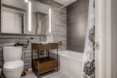 Experience the best of Manhattan from this spectacular building, offering sweeping views and hand-picked furnishings. This luxurious property features elegant apartments with designer kitchens and hardwood floors, stunning artwork, and sophisticated design throughout. Enjoy a massive Life Time Athletic Club, basketball court, and yoga classes on-site, all in a walkable location near the Theater District, the Javits Center, and public transit. Combining the premium amenities of a high-end resort with the space and privacy of a home, this beautiful tower offers the epitome of sophisticated city living. Wake up to the day through massive floor-to-ceiling windows, with each bed outfitted with premium linens and spacious closets. The bathrooms are equally elegant, featuring Olympic Gray porcelain tile and modern fixtures, including glass-walled showers with city views in some units. The Italian-crafted kitchen is equipped with European appliances, quartz countertops, and contemporary cabinets stocked with cookware, dishes, and utensils, making dining in a delightful experience. Please note there is an additional fee for all amenities, including the Life Time Athletic Club, two outdoor pools, and valet parking. Cribs are available upon request and may incur additional fees. Pets are welcome with a fee of $250 or $500, depending on size and breed. This address is one of the best in Manhattan, putting you within walking distance of Times Square, the Theater District, the Javits Center, and a plethora of shops and restaurants. For further journeys around the NYC metro, Port Authority Station is just a few blocks away, as is the Midtown / W. 39th St. ferry terminal. All guests are required to wear a mask in all non-private areas at all times. The use of amenities is subject to fees and availability. Photos are representative of the actual apartment, and there may be differences in furniture and layouts of the assigned unit. The building may have specific pet restrictions, including pet size and breed, so please check their pet policies prior to confirming your reservation. The living spaces are perfect for relaxing and recharging, whether you prefer to watch the game on the couch, catch up on emails, or admire the mesmerizing city views. High-speed wireless internet is available to support your remote work needs. [SI]