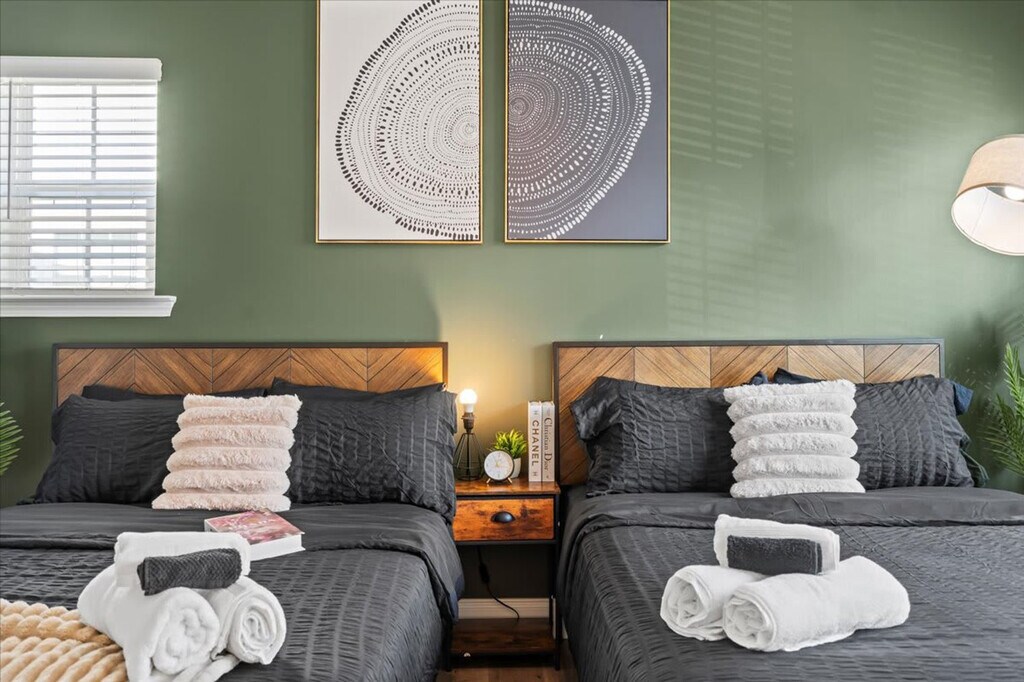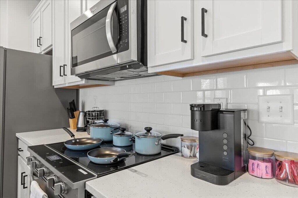 Stay in style in the eclectic city of Charlotte, home to the second largest banking center in the USA. This classy 1507 sq. ft. 3-bedroom and 2.5-bathroom townhouse features two king-size beds and two full beds for your comfort. With lightning-fast Wi-Fi, a convertible sleeper couch, a fully equipped kitchen, and other luxury amenities, this space is specially designed for longer-length stays. Step out to a lively neighborhood, just minutes from Uptown Charlotte and steps away from restaurants, cafés, bars, and shops. Begin your day with a perfectly brewed cup of tea or instant coffee from the convenient coffee station in your upscale kitchen. Whether you're here for business or leisure, this space is designed to provide the perfect balance of comfort and convenience. With vibrant restaurants just minutes away, you might find yourself exploring the culinary scene in Charlotte each night. After a long day, it’s reassuring to know that your well-equipped kitchen and elegant dining table are ready to provide a 5-star dining experience right at home. Whether you choose to venture out or stay in, this space serves as the perfect home base for work, relaxation, and entertainment. Private garage parking and driveway accommodate up to a certain number of cars. We welcome up to two pets per reservation, each weighing under 35 lbs, with a fee of $49 per pet for stays of 1–6 nights. Additional charges apply for longer stays. For pets over 35 lbs, a one-time large pet fee applies. Bringing undisclosed pets into the unit may result in a minimum $500 fine and cancellation of your stay without refund. Optional mid-stay cleaning is available for $175, which includes new linens, surface cleaning, and trash removal. Early check-in and late checkout are based on availability, with fees applicable for each hour. Situated in a vibrant neighborhood, this property places you within minutes of top attractions, dining, and nightlife. Enjoy easy access to the NASCAR Hall of Fame, Discovery Place Science, Carowinds Amusement Park, Billy Graham Library, U.S. National Whitewater Center, Spectrum Center, SouthPark Mall, Bank of America Stadium, Camp North End, NoDa (North Davidson Arts District), Plaza Midwood, and Freedom Park. Public transit and ride shares are readily available, providing quick access to Uber, Lyft, and local transit. Quiet hours are strictly enforced from 8:00 PM to 8:00 AM. During this time, guests must keep noise to a minimum, including avoiding loud conversations, TV, music, or activity that may disturb neighbors. Bluetooth speakers, sound systems, and amplified music are prohibited at all times throughout the unit, hallways, and outdoor areas. This property is equipped with noise monitoring devices and exterior security cameras. If noise levels exceed 80 decibels for more than 10 consecutive minutes, guests will be fined $2,500, removed from the property immediately, and their reservation will be canceled without refund. Smoking is strictly prohibited anywhere on the premises, including inside the unit, on balconies or patios, and in shared or public spaces. The unit is equipped with active smoke detectors. If a detector is tampered with, disabled, or triggered due to smoking, guests will be fined $2,500 and removed from the property immediately without refund. Unauthorized guests will result in a $500 fine per person, immediate removal from the property, and cancellation of the reservation without refund. Step inside and discover an inviting open-concept living area, elegantly furnished to provide a blend of relaxation and functionality. The space includes a spacious living area with plush seating, a 55” Smart 4K TV, and elegant décor. Fast Wi-Fi (300+ Mbps) is perfect for streaming, remote work, or video calls. A dedicated work station with a standing desk is perfect for remote work. [SI]
