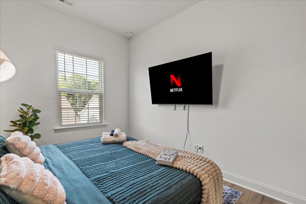 Stay in style in the eclectic city of Charlotte, home to the second-largest banking center in the USA. This classy 1507 sq. ft. 3-bedroom and 2.5-bathroom townhouse features two king-size beds and two full beds for your comfort. With lightning-fast Wi-Fi, a convertible sleeper couch, a fully equipped kitchen, and other luxury amenities, this home is specially designed for your long-term stays. Step out to a lively neighborhood, just minutes from Uptown Charlotte and steps away from restaurants, cafés, bars, and shops. Begin your day with a perfectly brewed cup of tea or instant coffee from the convenient coffee station in your upscale kitchen. Whether you're here for business or leisure, this space is designed to provide the perfect balance of comfort and convenience. With vibrant restaurants just minutes away, you might find yourself exploring the culinary scene in Charlotte each night. After a long day, it’s reassuring to know that your well-equipped kitchen and elegant dining table are ready to provide a 5-star dining experience right at home. This space serves as the perfect home base for work, relaxation, and entertainment. Private garage parking and driveway accommodate multiple cars. Public transit and ride shares are available with quick access to Uber, Lyft, and local transit. We welcome up to two pets per reservation, each weighing under 35 lbs, with a fee of $49 per pet for stays of 1–6 nights. Additional charges apply for longer stays. For pets over 35 lbs, a one-time $49 large pet fee applies for one pet, and $95 for two larger pets. Bringing undisclosed pets into the unit may result in a minimum $500 fine and cancellation of your stay without refund. Situated in a vibrant neighborhood, this property places you within minutes of top attractions, dining, and nightlife. Enjoy easy access to the NASCAR Hall of Fame, Discovery Place Science, Carowinds Amusement Park, Billy Graham Library, U.S. National Whitewater Center, Spectrum Center, SouthPark Mall, Bank of America Stadium, Camp North End, NoDa (North Davidson Arts District), Plaza Midwood, and Freedom Park. Quiet hours are enforced from 8:00 PM to 8:00 AM. Noise levels exceeding 80 decibels for more than 10 consecutive minutes will result in a $2,500 fine and immediate removal from the property without refund. Smoking is strictly prohibited anywhere on the premises. If a smoke detector is tampered with or triggered due to smoking, guests will be fined $2,500 and removed from the property immediately without refund. Unauthorized guests will result in a $500 fine per person, immediate removal from the property, and cancellation of the reservation without refund. All units are equipped with a smart lock or lockbox system. Access details will be shared via email or text message 24 hours prior to check-in, but only after the pre-check-in form and identity verification are completed. The townhouse includes a dedicated work station with a standing desk, perfect for remote work. Fast Wi-Fi at 300+ Mbps is ideal for streaming, remote work, or video calls. A laptop computer is not included. [SI]