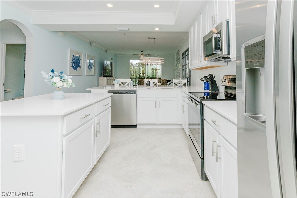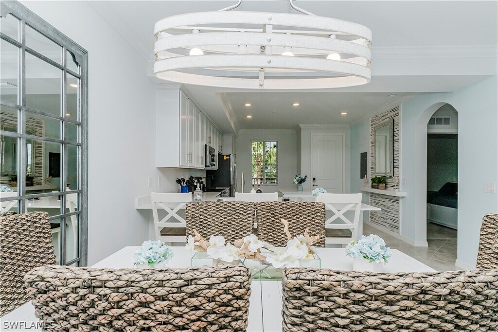 Jen WolfExperience resort-style living in this beautifully decorated third-floor Arbor condo located in the highly sought-after National Golf & Country Club at Ave Maria. This bright and inviting residence offers an open concept layout with elegant coastal-inspired d cor, stylish furnishings, and serene views that create the perfect atmosphere for a relaxing vacation getaway. The spacious living area flows seamlessly into the screened-in lanai, allowing you to enjoy Florida s sunshine and gentle breezes year-round. The fully equipped modern kitchen features stainless steel appliances, quartz countertops, shaker-style cabinetry, and a large breakfast bar ideal for casual meals or entertaining guests. This thoughtfully furnished codo. The guest bedroom includes two comfortable beds, making it perfect for visiting family or friends, while the private master suite features a king-size bed, large windows for natural light, and an en-suite bathroom with double sinks and a walk-in shower. Vacationers will enjoy full access to the resort s world-class amenities, including championship golf, resort and lap pools, a state-of-the-art fitness center, tennis, pickleball, dining options, spa services, and miles of walking. Whether you re seeking relaxation, recreation, or a luxurious home base for your Florida stay, this condo offers everything you need and more. A perfect blend of comfort, style, and location, welcome to your ideal vacation retreat at The National Golf & Country Club.