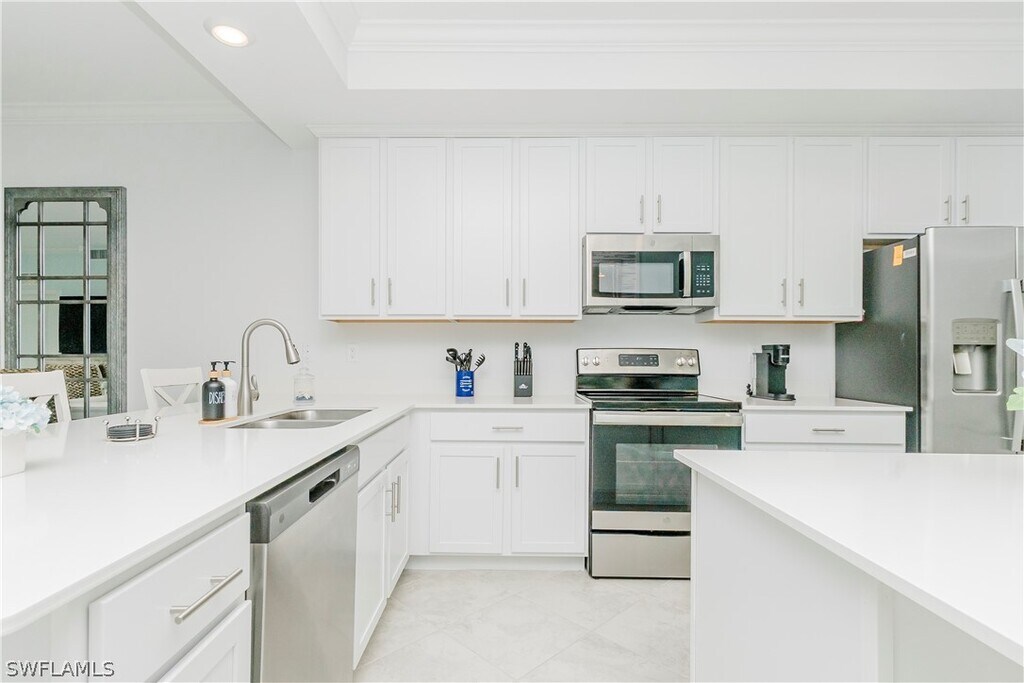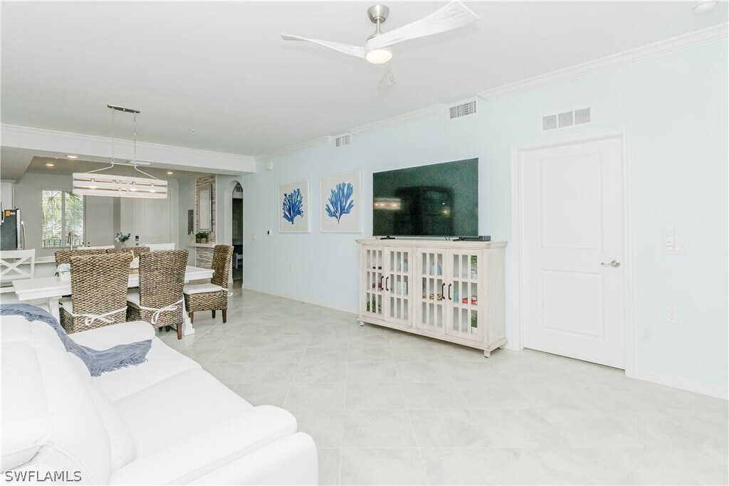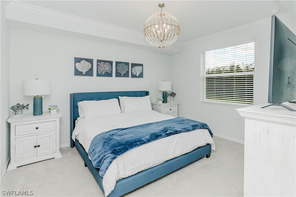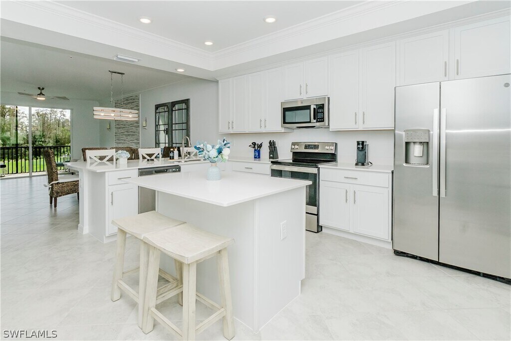 Experience resort-style living in this beautifully decorated third-floor Arbor condo located in the highly sought-after National Golf & Country Club at Ave Maria. This bright and inviting residence offers an open concept layout with elegant coastal-inspired décor,stylish furnishings,and serene views that create the perfect atmosphere for a relaxing vacation getaway. The spacious living area flows seamlessly into the screened-in lanai,allowing you to enjoy Florida’s sunshine and gentle breezes year-round. The fully equipped modern kitchen features stainless steel appliances,quartz countertops,shaker-style cabinetry,and a large breakfast bar ideal for casual meals or entertaining guests. This thoughtfully furnished codo. The guest bedroom includes two comfortable beds,making it perfect for visiting family or friends,while the private master suite features a king-size bed,large windows for natural light,and an en-suite bathroom with double sinks and a walk-in shower. Vacationers will enjoy full access to the resort’s world-class amenities,including championship golf,resort and lap pools,a state-of-the-art fitness center,tennis,pickleball,dining options,spa services,and miles of walking. Whether you’re seeking relaxation,recreation,or a luxurious home base for your Florida stay,this condo offers everything you need and more. A perfect blend of comfort,style,and location,welcome to your ideal vacation retreat at The National Golf & Country Club.