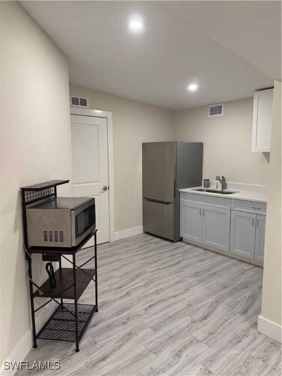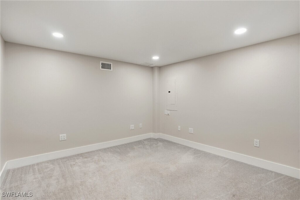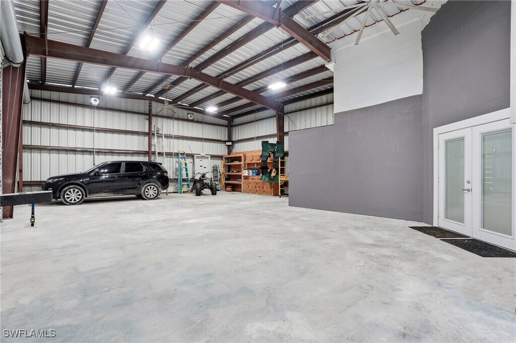 Private warehouse with attached living and office space located behind the main residence at 6070 Lancewood Way in Naples. This versatile metal building offers approximately 2,668 sq. ft. total,featuring 1,523 sq. ft. of open warehouse area and 1,145 sq. ft. of air-conditioned living/office space. The air-conditioned upper level includes 1 bedroom,a half bath,a spacious living area,and a kitchenette with a new refrigerator,microwave,and cabinet storage. The lower level features a full bathroom with shower,laundry room with new washer and dryer,and two additional flex rooms ideal for an office,den,or extra storage. Interior upgrades include fresh paint throughout and recessed lighting. The warehouse area offers three oversized roll-up doors,a separate pedestrian entrance,and ample ceiling height—ideal for vehicle storage,workshop,or small business operations. The building is wired with 240V power suitable for a vehicle lift,pre-wired for Comcast Business-grade internet,and includes free Wi-Fi. Exterior highlights include a large paver and gravel parking area with space for up to three service vehicles (no large rigs). This property is perfect for a start-up company or light commercial user seeking space to operate and store equipment. Situated on approximately 0.5 acres behind the front residence (not for rent),this space combines privacy,flexibility,and functionality. Conveniently located near Collier Blvd and Golden Gate Parkway,with easy access to I-75 and central Naples amenities.