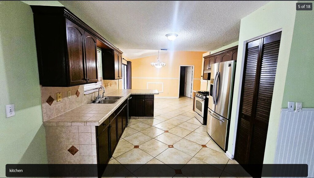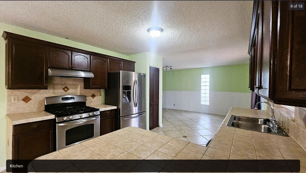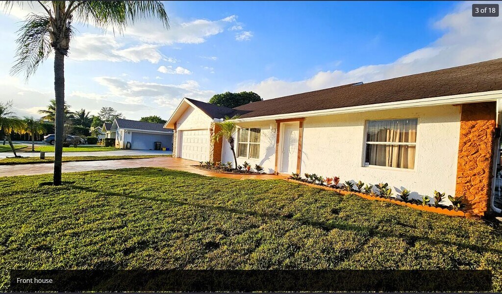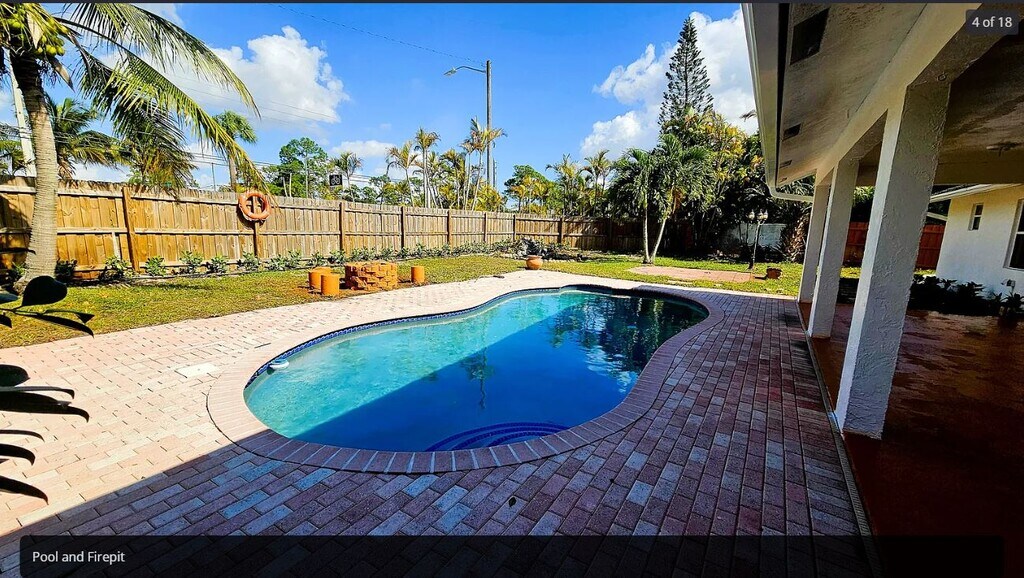 Luxury 3-bedroom, 2-bath single-family residence featuring a 2-car garage, private pool, firepit, and tranquil natural pond. Situated on an extended, fully fenced oversized corner lot, this property offers abundant parking, including dedicated space for boats, trailers, and commercial vehicles. The home has been freshly renovated and painted, boasting a spacious covered patio and a large private yard ideal for family living, outdoor entertaining, and relaxation. Secure and private, this exceptional property provides both comfort and flexibility in a highly desirable setting. 2485 sq. ft. -tile floors