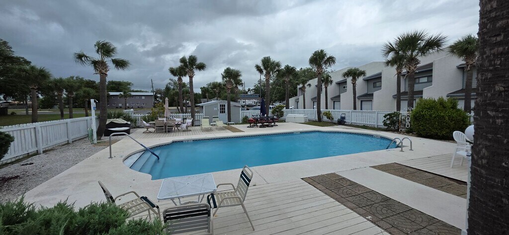 Experience coastal living at its finest in this stunning 3-bedroom, 3-bathroom waterfront home, with a community pool, perfectly situated less than 5 minutes from Tyndall Air Force Base. The primary bedroom suite is equip with a deep sitting tub and a screened in water facing balcony. These water views are something out of a movie. Ideal for military personnel, contractors, or anyone seeking close access to the base while enjoying off-base living. Situated with easy access to shopping, dining, and only a short walk from Under the Oaks park. Modern kitchen with updated appliances. Open-concept living and dining areas. Private outdoor space overlooking the water. Don't miss the opportunity to make this beautiful waterfront property your next home. Whether you're affiliated with Tyndall AFB or simply seeking a serene coastal lifestyle, this home offers the perfect blend of comfort and convenience.