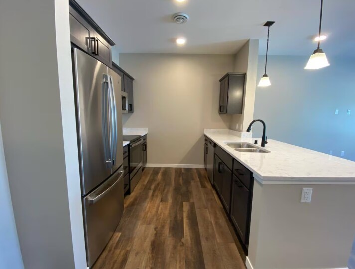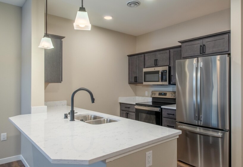 Loras Estates Sign a year lease before December 31, 2025, JANUARY RENT is FREE! Welcome home to this beautifully updated 2-bedroom, 1-bath residence where comfort meets modern convenience. Enjoy the ease of all utilities included and the fresh feel of brand-new appliances throughout. The open layout features high ceilings, vinyl wood flooring, and a stylish island bar with a stainless-steel sink, perfect for casual meals or entertaining. Both bedrooms offer generous walk-in closets, while the walk-in pantry and in-unit laundry add everyday functionality. Stay comfortable year-round with ceiling fans and heated flooring, and take advantage of the attached garage for added convenience. Outside, relax in the shared backyard, or host gatherings in the cozy community room complete with a fireplace—spacious enough for family celebrations or friends coming to visit. This thoughtfully designed home blends modern finishes with inviting shared spaces, creating a true sense of community. Property Restrictions - Pet Policy: Yes Smoking Policy: No Smoking Property Description Details Parking: Garage Kitchen/Laundry Appliances Included: Stove & Oven, Fridge, Microwave, Washer & Dryer Property Type: Apartment Utilities Included: ALL Yard: Shared Back A/C: Yes Landscaping and Snow Removal/Sating: Included