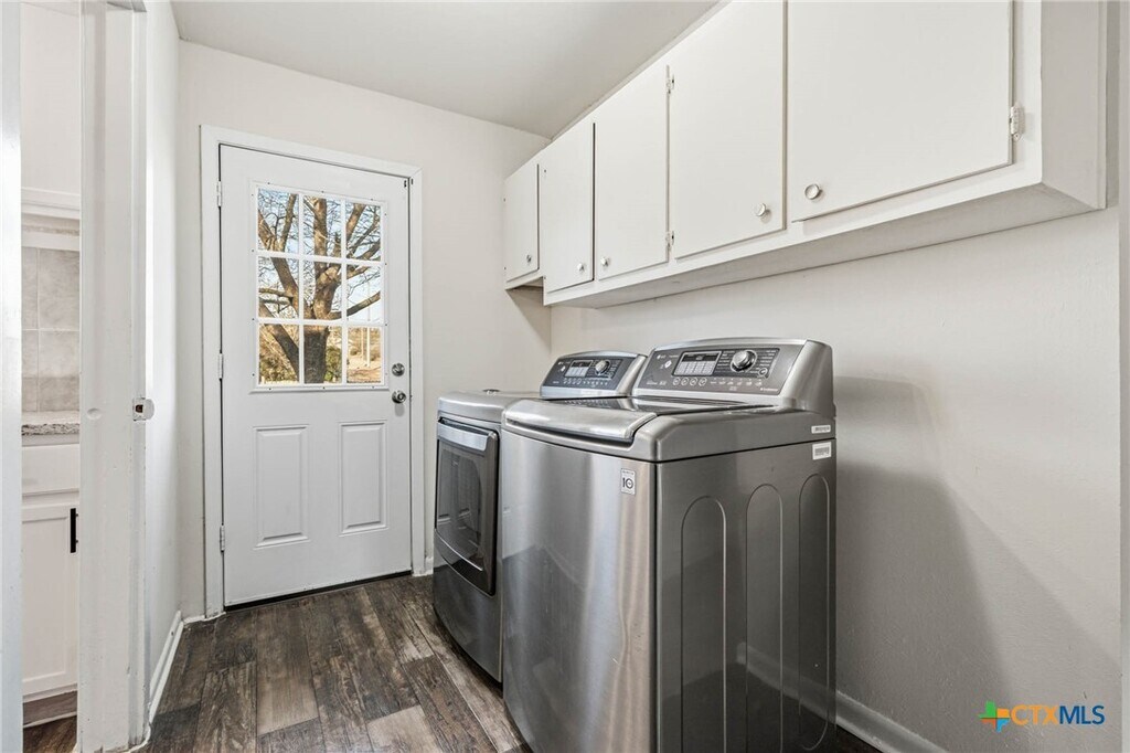 Experience charming,hassle-free living in this beautifully refreshed and partially furnished home in Copperas Cove. This residence features a bright,open-concept floor plan designed for both comfort and style. The chef-inspired kitchen is a true standout,boasting premium granite countertops,crisp white cabinetry with modern matte black hardware,and a full suite of stainless steel appliances. An oversized breakfast bar connects the kitchen to the spacious living area,creating an inviting atmosphere for daily living and entertaining. The home offers exceptional versatility with a dedicated dining area and a large secondary flex room. This bonus space is equipped with custom built-in shelving,making it an ideal setup for a quiet home office,a cozy media room,or a play area. For added convenience,the property includes a dedicated laundry room with high-efficiency LG appliances and extra storage. Being partially furnished,this home is ready for you to move in and start enjoying the space immediately without the stress of a full-scale move. Located in a prime area for accessibility,you are minutes away from the region's top employment and medical hubs. The property is surrounded by mature shade trees and features a wide driveway,providing a serene suburban feel while keeping you connected to everything you need.