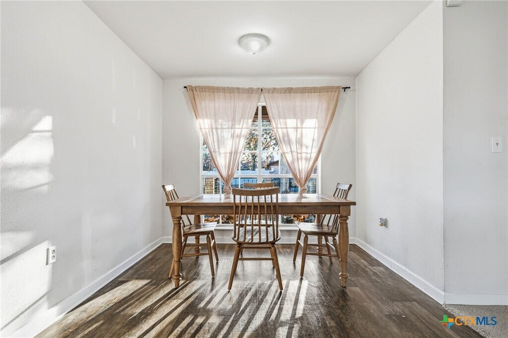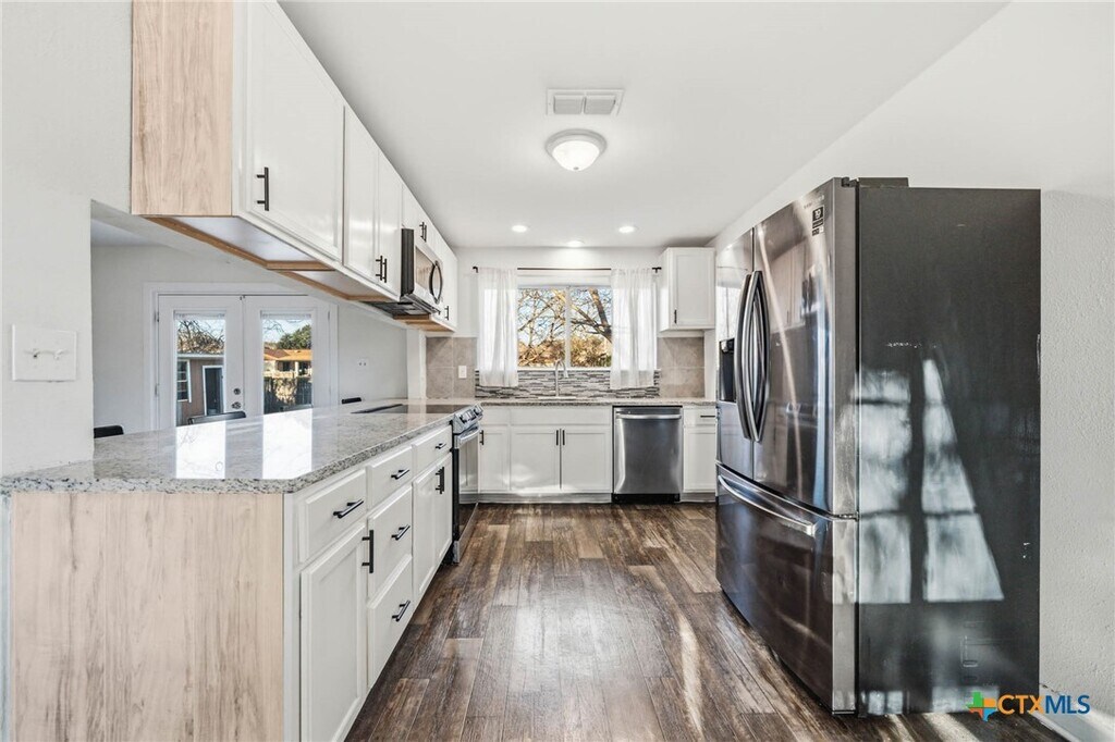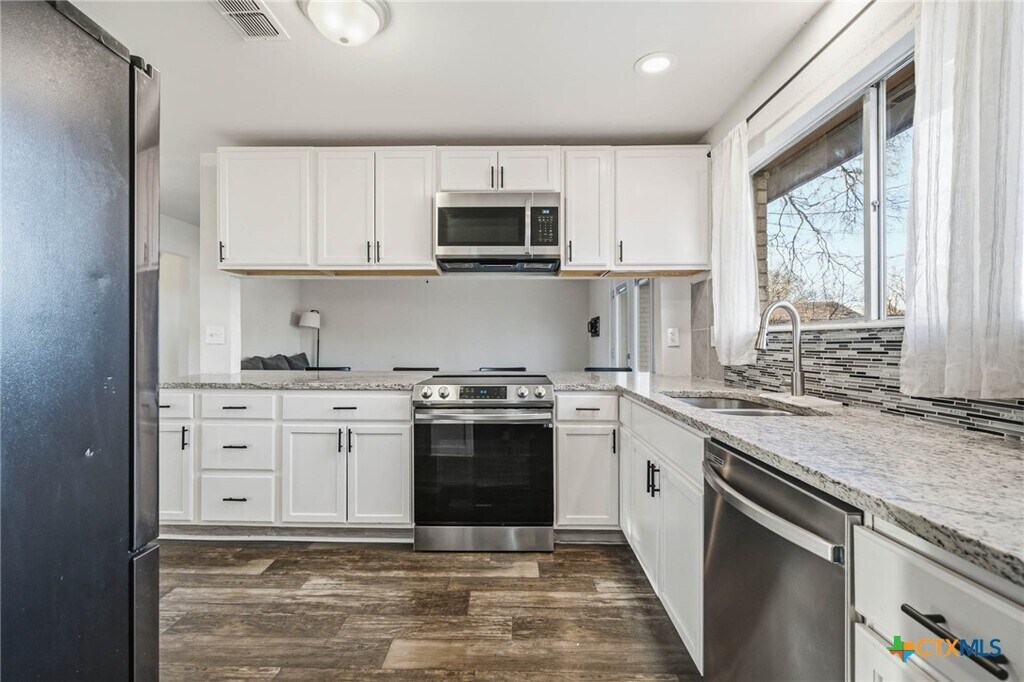 Experience modern, hassle-free living at 610 Creek St, a beautifully refreshed and partially furnished home in Copperas Cove. This residence features a bright, open-concept floor plan designed for both comfort and style. The chef-inspired kitchen is a true standout, boasting premium granite countertops, crisp white cabinetry with modern matte black hardware, and a full suite of stainless steel appliances. An oversized breakfast bar connects the kitchen to the spacious living area, creating an inviting atmosphere for daily living and entertaining. The home offers exceptional versatility with a dedicated dining area and a large secondary flex room. This bonus space is equipped with custom built-in shelving, making it an ideal setup for a quiet home office, a cozy media room, or a play area. For added convenience, the property includes a dedicated laundry room with high-efficiency LG appliances and extra storage. Being partially furnished, this home is ready for you to move in and start enjoying the space immediately without the stress of a full-scale move. Located in a prime area for accessibility, you are minutes away from the region's top employment and medical hubs. The property is surrounded by mature shade trees and features a wide driveway, providing a serene suburban feel while keeping you connected to everything you need. Nearby Highlights & Commute: Major Highways: Immediate access to Hwy 190 / I-14, providing a quick and direct commute to Fort Cavazos, Killeen, and Harker Heights. Education: Zoned for the reputable Copperas Cove ISD, with Clements/Parsons Elementary, Copperas Cove Junior High, and Copperas Cove High School all located nearby. Hospitals & Healthcare: Minutes from AdventHealth Central Texas, the Copperas Cove VA Clinic, and Baylor Scott & White Clinic – Copperas Cove.