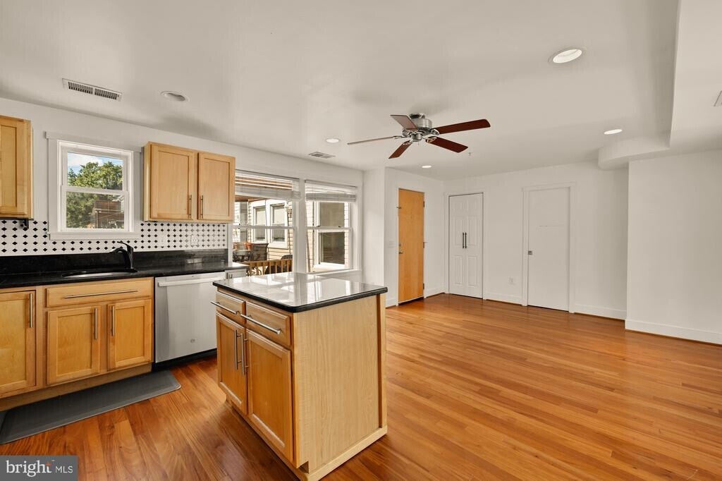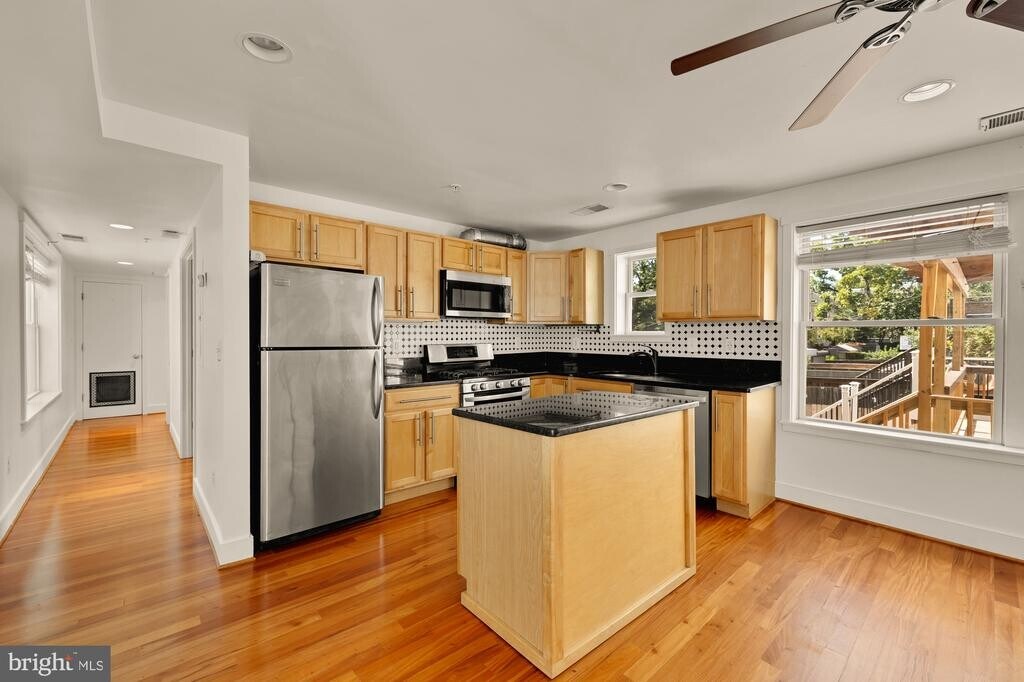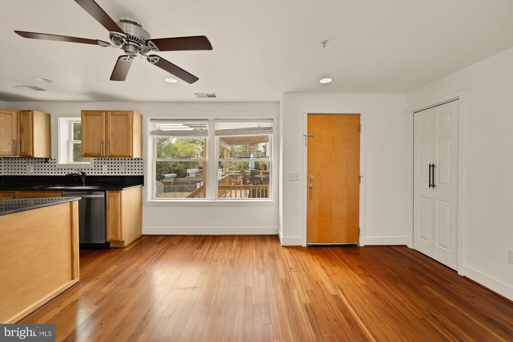 Welcome to 610 Jefferson Street NW #102, a beautifully appointed two-bedroom, one-and-a-half-bath condominium offering an open and light-filled layout in the heart of Brightwood Park. With windows on three exposures, this home is bathed in natural light throughout the day. The gourmet kitchen is outfitted with classic shaker cabinets, granite countertops, stainless steel appliances, and a sleek glass tile backsplash—perfectly blending style and function. The spacious primary bedroom comfortably accommodates a king-size bed and features a walk-in closet with a custom closet system. A second bedroom, with French doors and built-in shelving, offers versatility for guests, a home office, or a creative studio. Additional highlights include abundant storage and a thoughtfully designed open floor plan, making the unit feel both airy and practical. Situated just steps from the vibrant Kennedy Street Corridor, you’ll enjoy easy access to local coffee shops, restaurants, and retail. 3-minute walk to La Coop Coffee, Poplar, and Brightwood Pizza & Bottle. 6-minute drive to Walmart and Safeway. 6-minute drive to Timber Pizza, Cinder BBQ, Menya Hosaki, and Petworth Metro (Green).