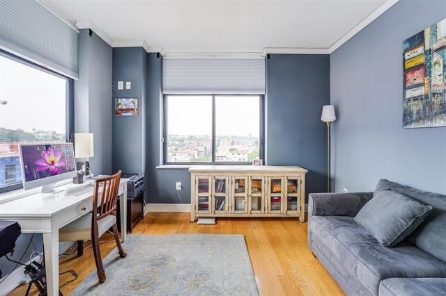 Welcome to 610 Newark Street, where convenience meets comfort. This spacious two-bedroom, two-bath residence is filled with natural sunlight thanks to oversized windows throughout. The newly renovated kitchen is designed with both style and functionality in mind, while the in-unit washer and dryer make everyday living effortless. The primary suite includes a private en-suite bathroom, offering the perfect retreat at the end of the day. Enjoy your own private terrace, ideal for morning coffee or evening relaxation. Residents enjoy a full suite of amenities, including a fitness center, dry sauna, outdoor courtyard, elevator, part-time concierge, and a private shuttle to the PATH train. Just blocks away from Hoboken’s PATH station and the 2nd St light rail, the building also sits across from local parks and will soon benefit from the highly anticipated restaurant market opening in 2026—bringing exciting new dining options right to your doorstep. This home is the perfect balance of modern comfort, community amenities, and unbeatable access to Hoboken’s best.