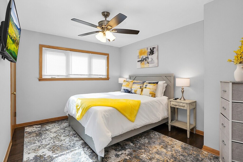 Welcome to this spacious 2,200 SF renovated single-family home located in the South suburbs, just 30 minutes south of Downtown Chicago. This property features 5 bedrooms and 2 bathrooms, with a master bedroom that includes a king-size bed, three bedrooms with queen-size beds, and one bedroom with two twin beds. The living room can accommodate an air mattress, making a total of six beds. The home is equipped with all the kitchen essentials you need, including plenty of utensils, cooking spices, and oils, ensuring you feel at home. This single-family home offers a fenced yard and a two-car garage with additional street parking if needed. The home is children-friendly, featuring a pack & play sleeper, a stroller, a highchair, and a booster seat. For entertainment, there are seven LCD televisions with access to Hulu, Disney, and ESPN streaming, as well as Netflix and Prime Video (with your login). Enjoy up to 300 MBPS internet speed with Wi-Fi throughout the entire home and a soundbar in the living room. Additionally, there are over 50 board games and playing cards available for fun and games. The property includes premium amenities such as an arcade cabinet with 2000 classic games and a pinball table. Enjoy the convenience of having over 10 cooking spices and three types of cooking oils for a delightful meal experience. Check-in requires submission of ID and security fees, and failure to do so will result in no refunds or access to the property. Fees may vary for long-term stays. The property does not accept reservations without security fees paid upfront, with no exceptions to this house rule.