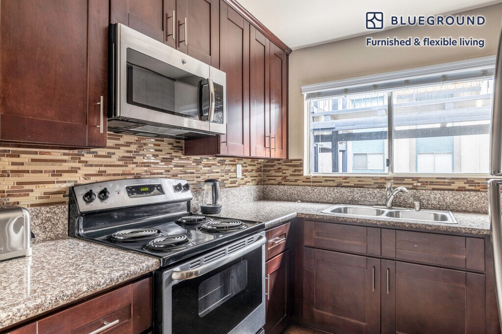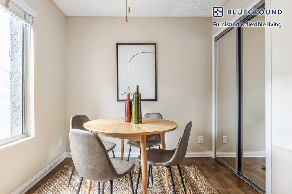 Show up and start living from day one in Glendale with this stylish one bedroom Blueground apartment. You’ll love coming home to this thoughtfully furnished, beautifully designed, and fully equipped Downtown home. (ID #LAX425) The advertised rate of $2,570/month is the lowest available price, based on a 1 month(s) and 29 day(s) stay with a move-in date of December 10, 2025. If you’re looking for a 1-year stay, the rate is $2,790/month. Rates vary depending on the duration of stay, season, and other parameters. For exact pricing and additional pricing components, please visit our website and enter your desired move-in and move-out dates. The rate is applicable when billed upfront; it can be higher if billed in multiple payments. Brokers are welcome to reach out. Were you looking for an unfurnished lease? Try Blueground instead and upgrade from unfurnished to furnished living: - Furnished at rates comparable to unfurnished - No setup or furniture costs - save thousands - Move-in ready - save time, just bring your suitcase Designed with you in mind Thoughtfully designed with bespoke finishes, modern furnishings, and a fully equipped kitchen, you’ll enjoy that “I’m home” feeling with this Blueground apartment. Whether you’re lounging in your bright living room streaming the latest and greatest entertainment on the smart TV or premium wireless speaker, or getting some well-earned rest on the superior quality mattress with luxury linens, you’ll fall in love with everything this Downtown apartment has to offer. Sleeping arrangements King Bed, 70.8in/180cm Amenities Building amenities unique to this one bedroom apartment include an on-site: - Dryer in building - Elevator - Game room - Swimming pool - Washing machine in building - Parking - Pets allowed - Sauna Arrival and ongoing support The entire apartment is yours to enjoy! Throughout your stay, you’ll have access to our Client Experience team through the Blueground App. You can schedule additional cleanings, submit maintenance requests, and view our neighborhood recommendations with just a few taps. We’ll share all details upon confirmation of your stay. Ideally Located Located in DTLA, this furnished apartment invites you to explore the heart of one of LA’s fastest-growing neighborhoods. Today, the area represents the central business district of the city and hosts the Los Angeles Convention Center (LACC), a world-class convention and exhibition space. From museums, like The Broad, to restaurants and bars in the Historic Core or concerts and sporting events in South Park, this modern metropolis offers a well-balanced blend of business and pleasure. The Arts District and Chinatown are also two of the trendiest spots in Downtown Los Angeles with new restaurants and nightlife options. Other things to note Building amenities may have an extra cost. This Blueground apartment has flexible lease options, allowing you to book it for one month, a year, or more. Pets are welcome, though weight limits and breed restrictions apply and may incur fees. Parking is offered based on availability and is subject to a fee. We take great pride in ensuring every photo displayed is shot in our own units with our actual furnishings. That said, we regularly refresh our decor and furniture arrangement, which may differ from what’s pictured. Also note - Some apartments in this building are undergoing remodeling; construction sounds may occasionally be heard [SI]