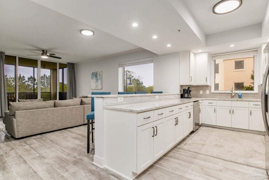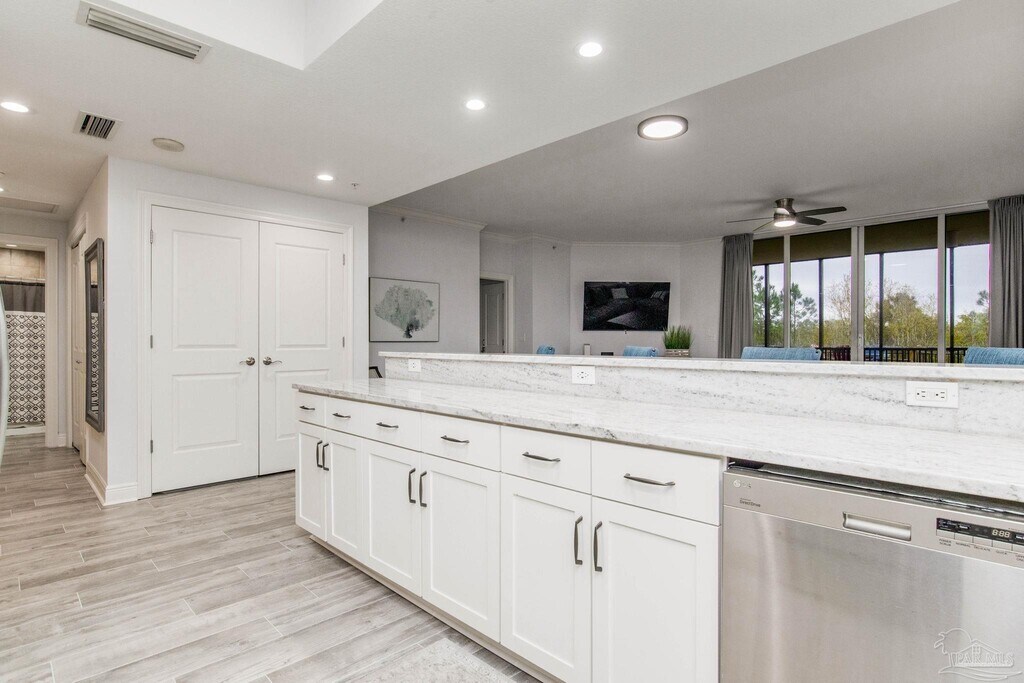 Unfurnished 3BR/2BA condo located in Santo Amaro at Lost Key Golf and Beach Resort available for long term lease! Enjoy the expansive views of the Lost Key and Perdido Key from each room in this beautiful end unit. The spacious kitchen overlooks the pool area and comes equipped with stainless steel appliances,granite countertops and an extended breakfast bar that offers plenty of seating. The living room and master bedroom have access to the over-sized screened-in porch,which overlooks the Intracoastal Waterway and Lost Key's championship golf course. The lavish master features a spilt dual vanity,large garden tub,separate stand up shower and walk in closet. This rental comes with a downstairs storage locker and an assigned outdoor parking space - there is also guest parking available in the outdoor lot. Basic cable,water,trash and pest control are included in the monthly rent and home is already wired for Cox Internet. Take advantage of the pool,BBQ/entertainment area,and fitness center during your stay at Lost Key. This private master planned community features an 18-hole championship golf course,tennis,walking/biking trails,gated entry and more. Minutes from the back gate of NAS Pensacola,shopping,restaurants,and the beach. Sorry this property is not pet friendly.