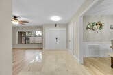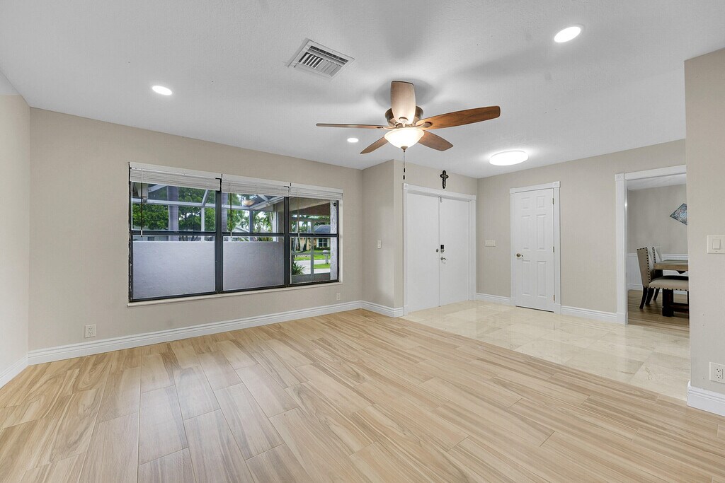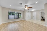 Beautifully renovated pool home in the non-HOA community of Sugar Pond. Situated on a large, lush corner lot, this single-story residence offers exceptional curb appeal and a prime location for year-round living. Golf carts are permitted in Wellington, and the home is zoned for A-rated schools. Ideal for extended stays for the savvy equestrian to enjoy multiple Winter Equestrian Festival seasons at a discounted price compared to seasonal rental. The home features a spacious front screened-in patio, perfect for an indoor garden or tranquil coffee spot protected from mosquitoes. Double door entry leads to a bright interior with tile flooring and volume ceilings, showcasing a direct view of the sparkling blue inground pool with a waterfall.