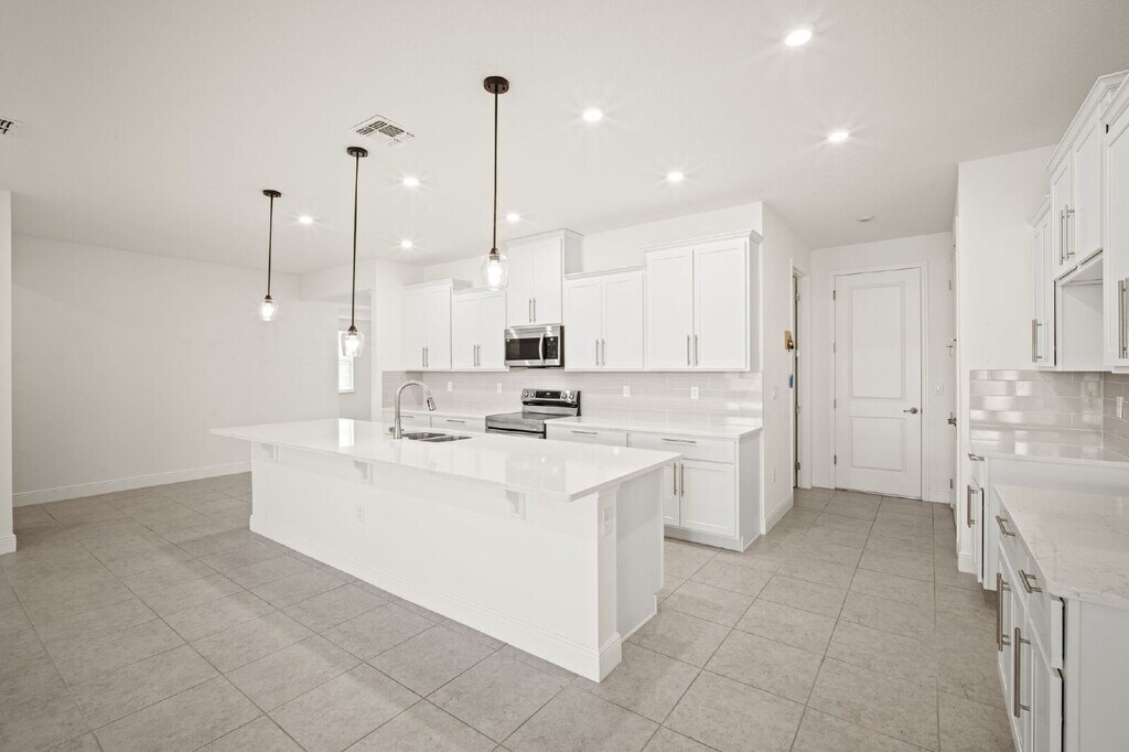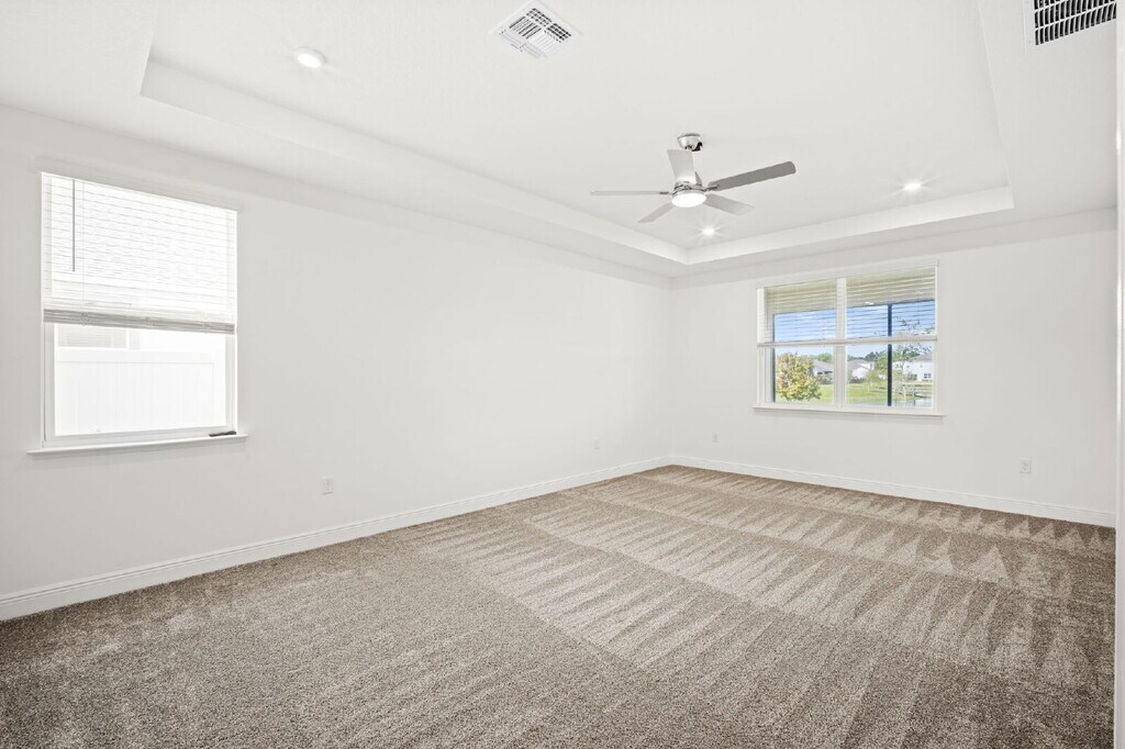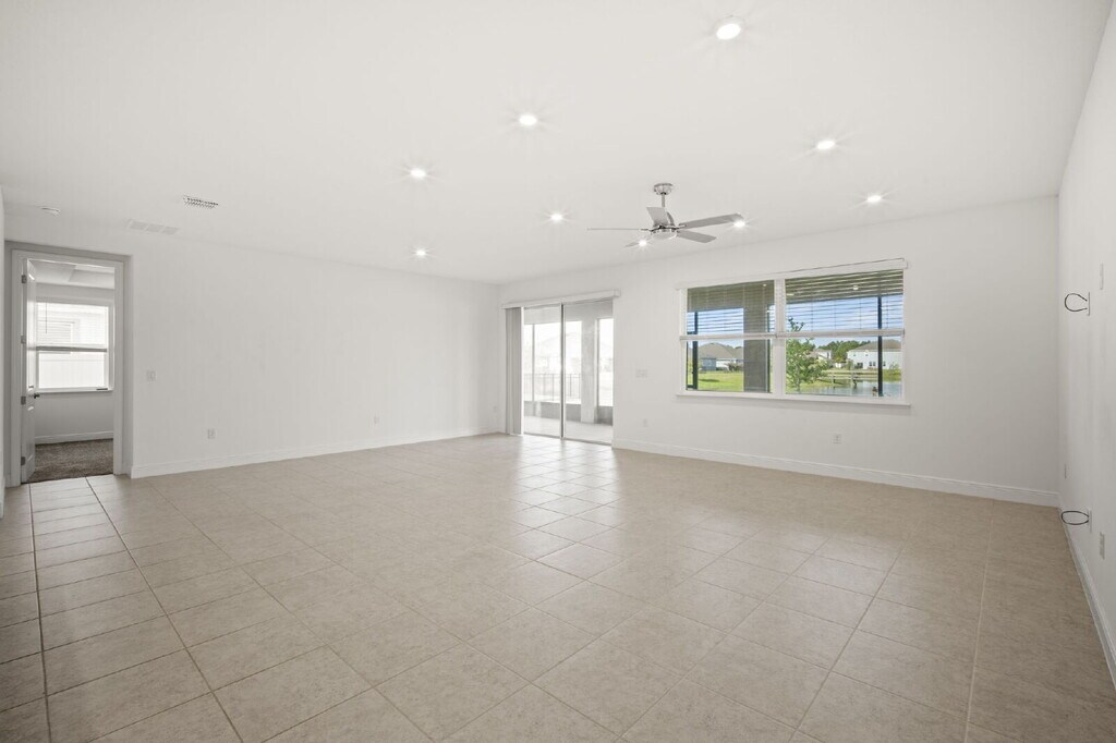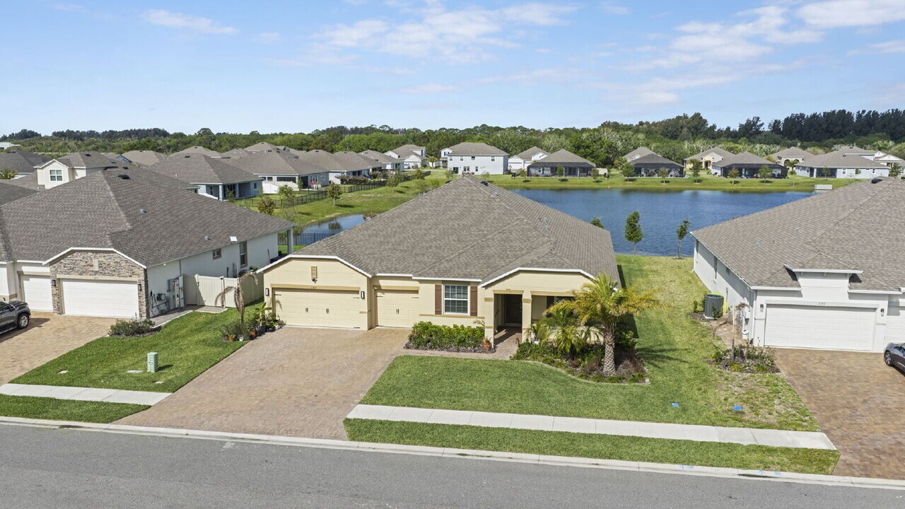 Spacious 4BR/3BA single-family home with 3-car garage and water view. Features include high ceilings, split floor plan, carpet and tile flooring, large living room, dining room, and flexible bonus room ideal for office or den. Open kitchen offers island with breakfast bar, pantry, and ample cabinet and counter space. Primary suite includes his-and-hers closets; most bedrooms have walk-in closets. Enjoy the screened porch overlooking the pond. Conveniently located near Cape Canaveral with easy access to NASA, SpaceX, and Blue Origin, also a short drive to Orlando!