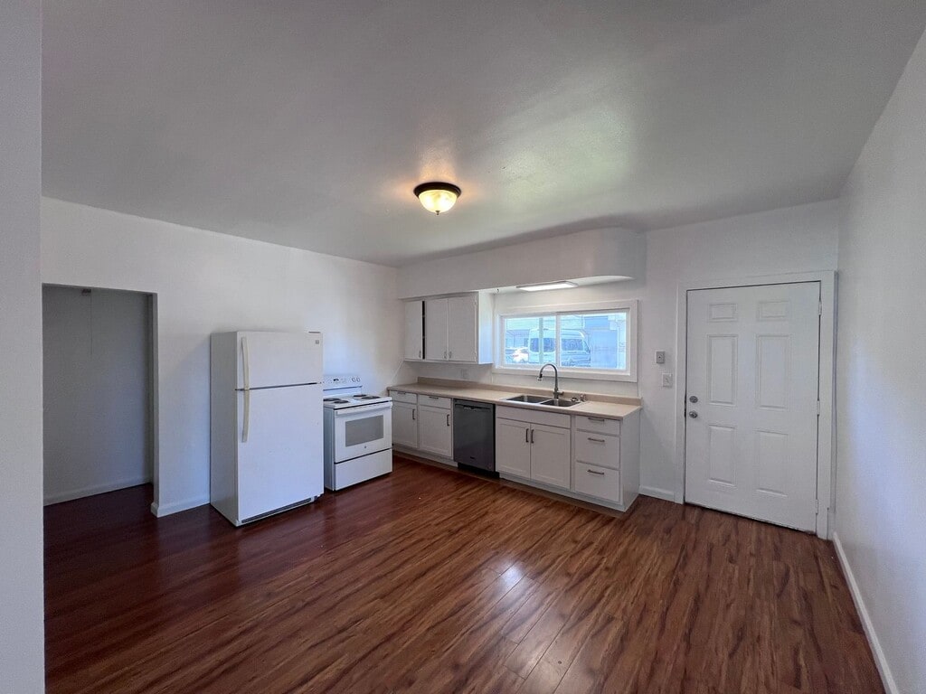 Welcome to our recently updated two-bedroom, one-bathroom apartment! This inviting space features beautiful hardwood flooring, modern fixtures, and fresh paint throughout. The spacious kitchen is equipped with brand-new cabinets, full-size appliances, including a dishwasher, and plenty of storage to meet all your needs. There is shared on-site laundry. $200 OFF AT MOVE IN Tour/Apply at: