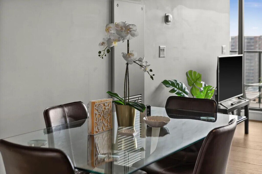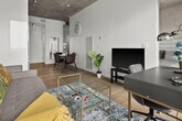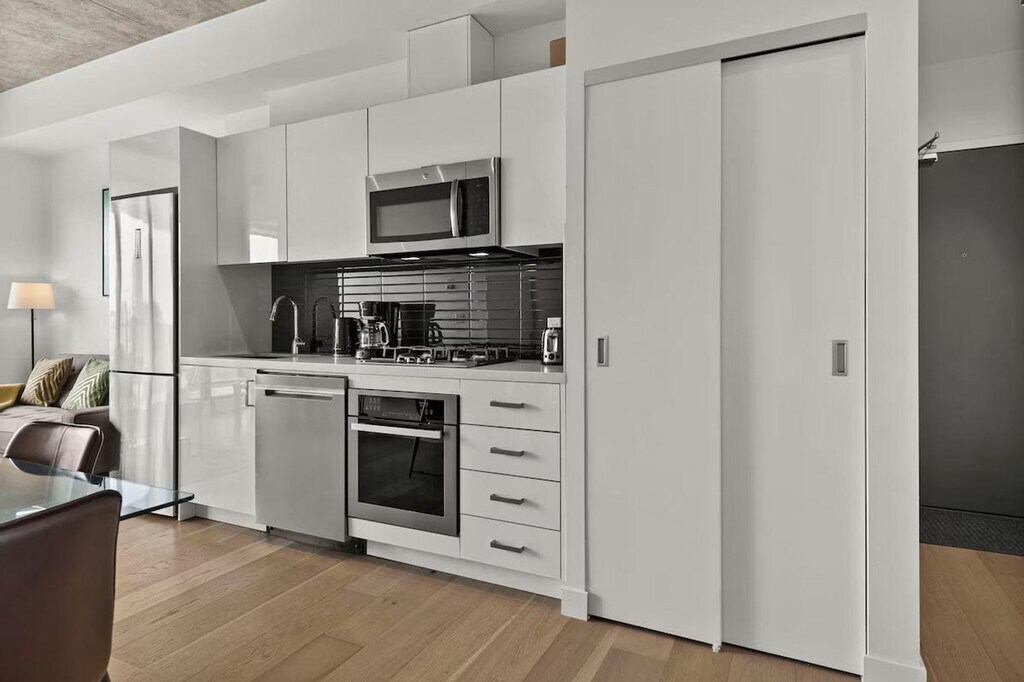 Feel at home in this modern, bright, and centrally located 1-bedroom plus den apartment in downtown Calgary. This comfortable suite has everything you need. The fully functional kitchen includes tea, coffee, a kettle, a coffeemaker, and a toaster. Enjoy the smart TV with Netflix, high-speed Wi-Fi, and the convenience of an in-suite washer and dryer. The bathroom is equipped with towels, shampoo, conditioner, body wash, a hair dryer, and other toiletries. Paid outdoor parking is available right next to the building for $15 per night, with no reservation needed. Amenities are open every day from 5 am to midnight and include a gym and an outdoor seasonal pool. Top Calgary attractions nearby include Calgary Tower (8-minute walk), Stampede Park/Saddledome (12-minute walk), Stephen Avenue Walk (10-minute walk), 17th Avenue restaurants and bars (7-minute walk), Scotiabank Saddledome (14-minute walk), Calgary Zoo (8-minute drive), Peace Bridge (6-minute drive), TELUS Spark Science Centre (10-minute drive), and Calgary International Airport (20-minute drive). Smoking is strictly prohibited anywhere in the building. Pets are allowed for stays of 28 nights or longer. As part of the anti-fraud verification process, each guest must send a selfie holding their ID. All guests staying in the apartment must provide their ID prior to check-in. Registration Number: BL293994 [SI]