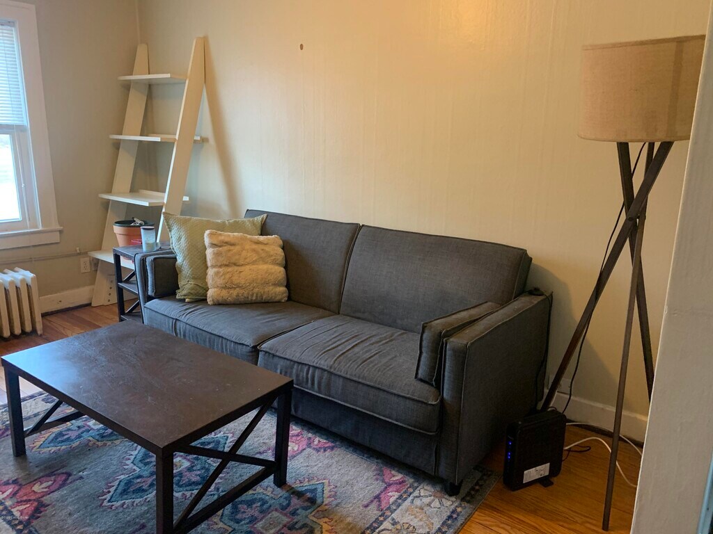 This spacious and sunny 1 bedroom,1 bath updated apartment in a charming quiet building is ready for you to call it home. Stainless gas stove,hardwood floors,arched doorway,and a mini-split system that ensures year-round comfort with efficient heating and cooling. Expansive front porch,and off-street parking area for added convenience. Three room total - living room,dining room/office and bedroom. Conveniently located to downtown,UofL,Germantown,coffee shops,grocery stores,expressways,medical center and not far from the Highlands. Laundry in building. Non-smokers only. Please call or text for a showing. Pets considered. Owner/agent