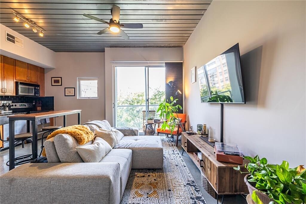 Live at the center of it all, located Directly Across from Ponce City Market and the Beltline. Enjoy modern furnishings, and every convenience you need, this is stylish city living made easy! It's prime location also offers quick access to Freedom Parkway, I-75/85 and I-20. This is a turnkey condo furnished with Smart TVs, Nest thermostat, washer & dryer, high speed internet and your own bicycle & lock to cruise the Beltline with. The condo is spacious and bright with 10’ ceilings, polished concrete floors, and a private covered balcony with stunning views. It is also equipped with a modern kitchen including granite countertops, stainless steel appliances (including dishwasher), Keurig coffee maker, cookware, glassware, and all essentials provided. The bedroom is comfortable with a large walk-in closet, Smart TV, and direct bathroom access (linens included). It is great for working remotely with a work-from-Home Ready – Dedicated office space plus high-speed internet. Secured and covered parking + your own Reserved space in gated garage. The community Amenities include: Fitness center, conference room, clubhouse and outdoor courtyard. Utilities: are an additional $150, wifi is included in rent. This condo combines convenience, comfort, and unbeatable walkability — the perfect choice for anyone looking to live in one of Atlanta’s most sought-after neighborhoods.