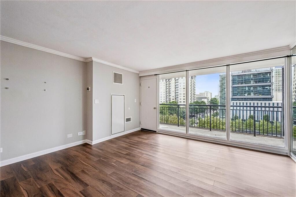 Right in the Heart of Midtown,this Condo delivers an Unbeatable Location you'll love. Just One Block from the Fox Theatre,across from Emory Midtown,and Steps to Georgia Tech,MARTA,Piedmont Park,and Tons of Restaurants and Shops it doesn't get more Central than this! Step inside to a Bright,Open Living Space with Floor-to-Ceiling Windows,Hardwood Floors,and Classic Crown Molding throughout. The Kitchen features Stone Countertops,White Cabinets,a Breakfast Bar,and Views to the Living Room Perfect for Everyday Living or Hosting Guests. Enjoy your own Private,Spacious Balcony Ideal for Morning Coffee or Evening Cocktails with a View. The Building offers Top-Notch Amenities including 24-Hour Concierge Service,a Full Fitness Center,Resort-Style Pool,Elevator Access,Vending Machines,and an On-Site Laundry Facility. You'll also have One Unassigned Parking Space with Plenty of Guest Parking available. Whether you're a First-Time Buyer,Investor,Georgia Tech Student,or Empty Nester looking for a Low-Maintenance City Lifestyle this One Checks All the Boxes. Don't miss your chance to own a Piece of Midtown's Vibrant Energy!