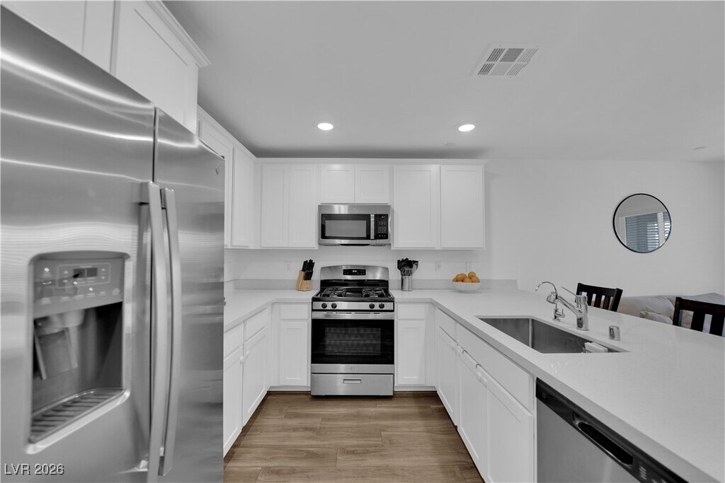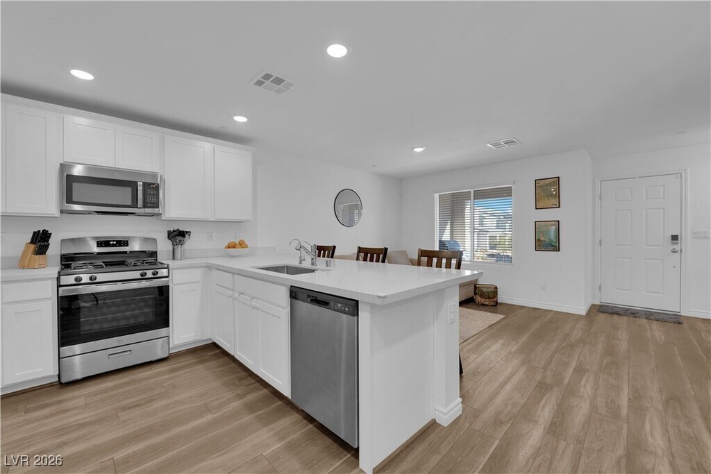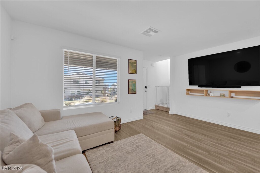 Welcome to 6200 Foxes Dale, a 3-bedroom, 2.5-bath home located in the gated Centennial Heights community. The open downstairs floor plan features wood-look flooring and includes all appliances. Upstairs, the bedrooms provide functional and comfortable living space. The home offers a two-car garage and access to community parks and open spaces. Conveniently located near the 215 freeway with easy access to Centennial Hills and Summerlin shopping, dining, and amenities. Move-in ready.