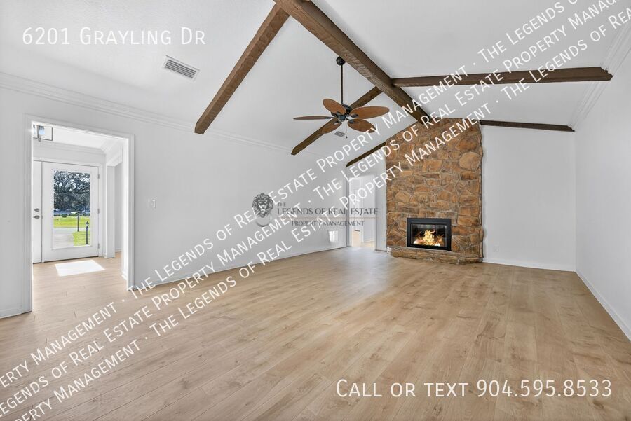 Welcome to this 2,200+ sq. ft 4-bedroom, 2-bathroom fully renovated single family home! Located in the long established Royal Lakes neighborhood, this will property not last long! The interior and exterior have endured a complete makeover! As you enter the home you are welcomed with brand new LVP and paint throughout. The formal dining & living room ease you into the kitchen and family room spaces. The kitchen comes equipped with brand new stainless steel appliances. New washer and dryer as well. The family room boasts a vaulted ceiling with original wood beams and a wood burning fireplace. Plenty of space for entertainment and family gatherings. The large primary suite offers two closets, additional vanity cabinetry and a custom tiled shower. One guest bedroom also comes with an additional two closets. The screened in patio is a great space for relaxation overlooking the oversized back yard. This home has it all! Location, upgrades and more! Lawn care service included!
