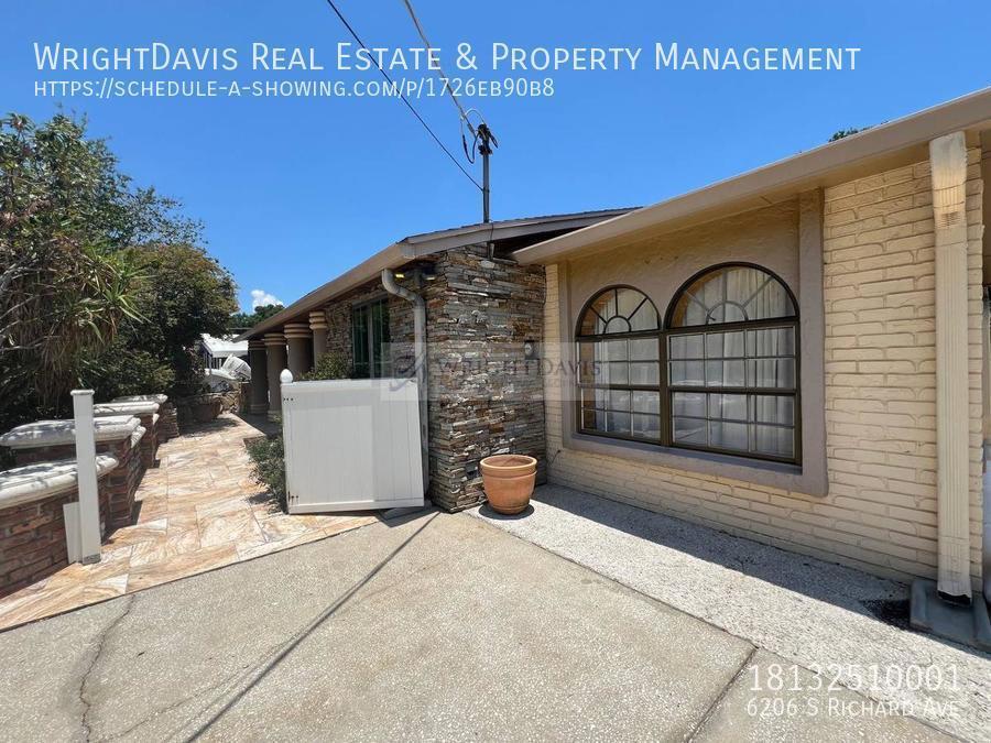 Welcome to your own slice of paradise in South Tampa! This beautifully updated 3-bedroom, 2-bath home blends comfort, style, and convenience in one perfect package. With newer flooring throughout, the home feels modern, bright, and move-in ready. Curb appeal abounds with lush, tropical landscaping and an oversized driveway that leads to a charming brick-accented entryway and gated front patio. Inside, the spacious living room welcomes you with abundant natural light and sleek laminate flooring. The heart of the home is the stunning kitchen, complete with stainless steel appliances, including a double oven, granite countertops, and stylish cabinetry with bonus overhead storage. A breakfast bar seamlessly connects the kitchen to the dining area, creating the ideal setup for entertaining. Just off the kitchen is a functional laundry area and full bath, plus a large sunken family room with French doors that open to a serene courtyard. Down the hallway, youll find all three bedrooms and an updated hall bath featuring a walk-in shower with glass doors. The primary suite includes sliding glass doors that lead directly to the backyard, offering easy indoor-outdoor living. Out back, your private fenced retreat awaits with a brick courtyard, two concrete patios, lush tropical landscaping, a garden space, and a storage shed for added convenience. Ideally located near MacDill Air Force Base, Tampa International Airport, the Selmon Expressway, Bayshore Boulevard, and a variety of shopping and dining options, this home offers the best of South Tampa living. In addition to the advertised base rent, all residents are enrolled in the Resident Benefits Package (RBP) for $50.00/month, which includes HVAC air filter delivery, credit building to help boost your credit score with timely rent payments, utility concierge service, making utility connection a breeze during your move-in, and much more. More details upon application. Pets welcome! Occupied and available 05/15/2026!! Virtual Video tour: Ceramic Tile Dogs Ok Extra Large 101+ Lbs Dogs Ok Large 61 100 Dogs Ok Medium 36 60 Dogs Ok Very Small Under 35lbs Fenced Granite Counter Pet Restrictions Pets Allowed Storage Shed Uncovered Patio Wood Flooring Laminate