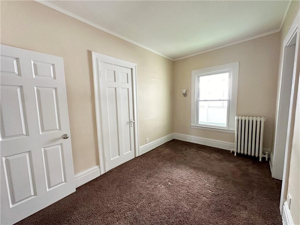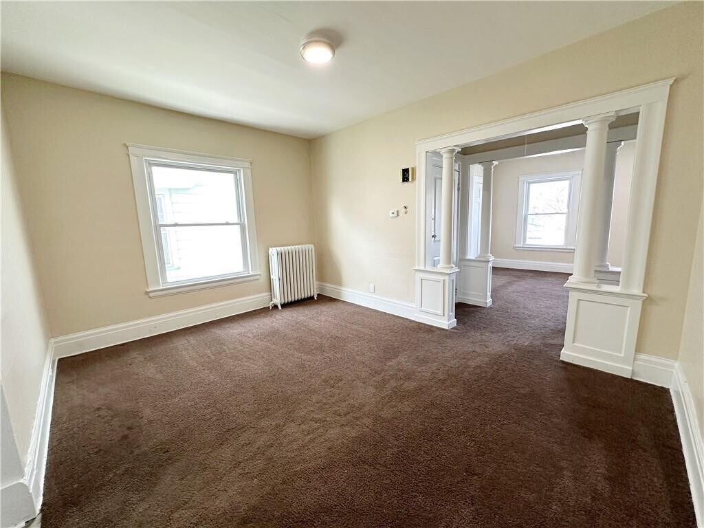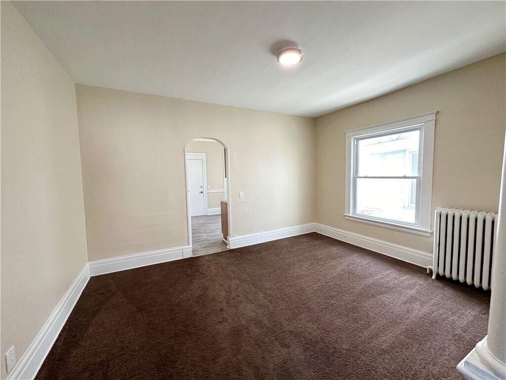 Available Immediately! This 3 Bedroom,1 Bathroom apartment offers a generously sized layout with formal dining room,walk-in pantry,updated kitchen and bathroom,entire unit freshly painted and a massive enclosed second-level porch. Additional features include a 3-car bay garage and ample off-street parking. Laundry hookup available in basement. Water,Trash & Lawncare included. Tenant responsible for Gas,Electric & Snow Removal. Pets are negotiable.