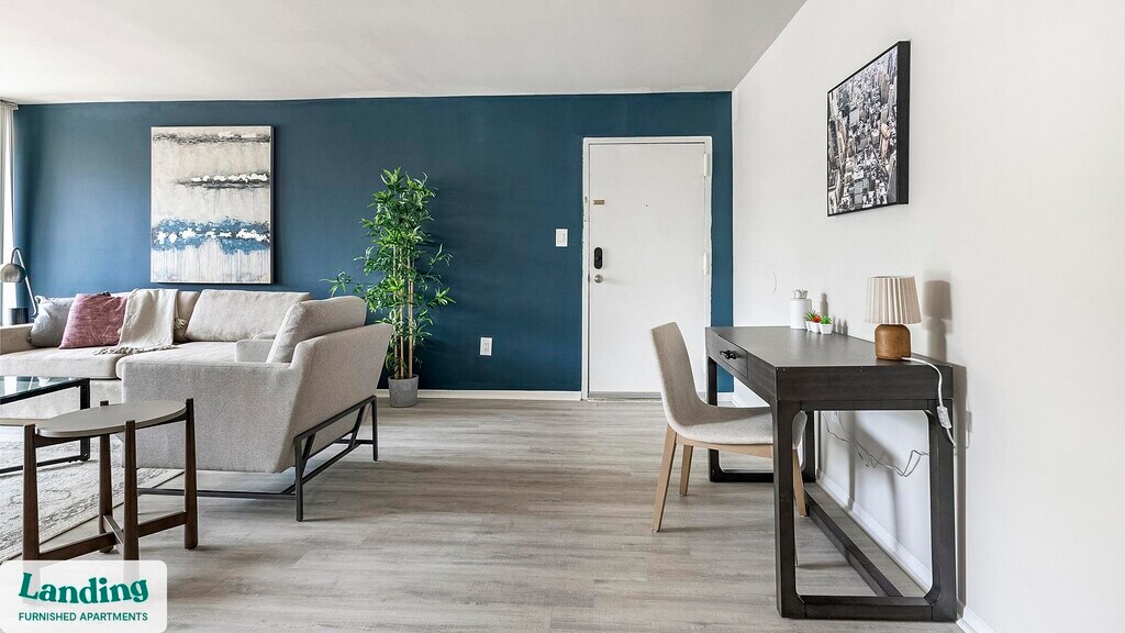 Landing offers flexible lease terms from weeks to months. Please always visit our website or contact us for the latest pricing & availability. Stay longer, save more: 6-Month Minimum base rent: starts at $2723/mo 12-Month Minimum base rent: starts at $2273/mo Landing offers flexible leases across a network of over 35,000 fully-furnished apartments throughout 375+ cities so you can rent on your terms, practically anywhere, and avoid the hassle of paying deposits or application fees. Visit to learn about all the benefits of a Landing membership, see our competitive up-to-date pricing, explore available apartments, take virtual tours, and make reservations online without jumping through traditional rental hoops. Landing's apartments at Franklin Park at Greenbelt Station are designed for comfortable, easy living, with the ability to stay as long as you like. Experience living with Landing Every apartment is outfitted with all the modern essentials including: custom-designed furnishings, a fully-equipped kitchen with deluxe stainless steel appliances, a gourmet coffee maker, premium linens, Smart TVs, and incredibly fast, reliable internet for working from home. When you live with Landing, you'll enjoy a hassle-free experience with the added benefit of 24/7 access to our dedicated member experience team. Some of the nitty-gritty: a background check and proof of income are required; we're completely smoke-free; bundled utility packages and pricing vary based on length of stay; pet-friendly options available; listed price reflects a 12-month minimum stay.