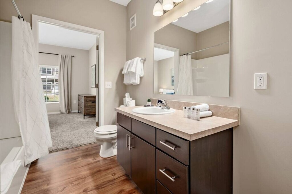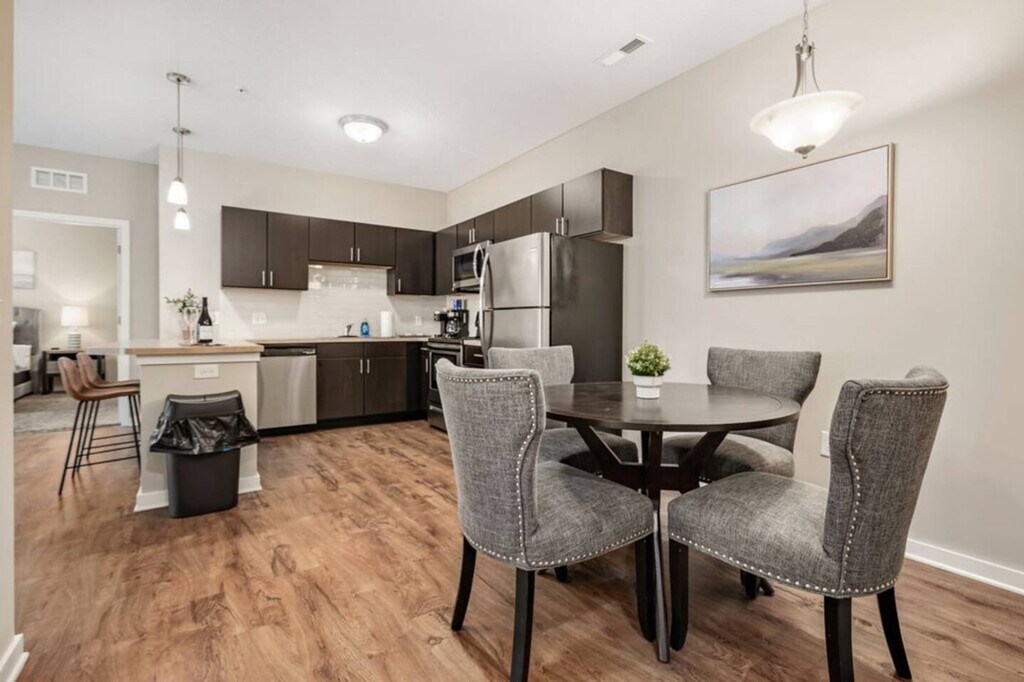 Feel at home in this move-in-ready, all-inclusive 2-bedroom, 2-bath furnished flat in a quiet, upscale neighborhood near New Albany, Intel, and nearby data centers. Enjoy the convenience of a prime ground-floor location with no stairs. This apartment is comfortably furnished and features two spacious bedrooms, two full baths, a fully stocked kitchen, laundry, and workspace. The kitchen is equipped with full-size appliances, cookware, utensils, a coffee station with a drip, Keurig, and French press, a dining table for 4, and a breakfast bar for 2. The in-unit laundry includes a full-size washer and dryer and a starter supply of detergent. Pets are welcome with prior approval and a $10/night pet fee. Access to a community pool, gym, and clubhouse are included. Free on-site parking is available. Nestled in a quiet, upscale neighborhood in Gahanna / New Albany, Ohio (Columbus area), this apartment offers quick access to major highways and key destinations. John Glenn Intl Airport (CMH) is 10 minutes away, Easton Town Center is 10 minutes away, and Intel, Chase, and corporate offices are 15 minutes away. You'll find tons of nearby restaurants, grocery stores, pharmacies, Target, and cafés within 5 minutes, as well as nearby parks, trails, and recreation areas. It’s the perfect blend of convenience and calm, close to everything yet tucked away for privacy. ID verification will be required before your arrival. After you book, a link will be sent to upload a photo of your ID and take a selfie. The software runs a quick background check, then sends check-in details. Includes a desk and ergonomic chair, a 50” Smart TV with streaming and DirecTV, and high-speed Wi-Fi for remote work that is dedicated and never shared. [SI]