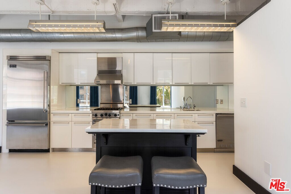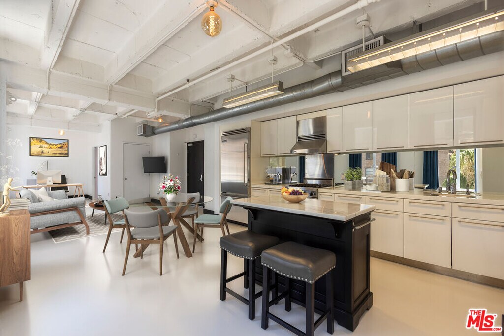 This furnished, one bedroom one bathroom loft-like condominium provides New York-style living in the heart of Hollywood. Located inside the historic Lofts at Hollywood & Vine building, the property offers an open concept living/dining space with a separate, large bedroom and en-suite bathroom. The large bathroom consists of a trough sink with double faucets, a large shower, and a separate lavatory. Large French windows look west toward Vine Street and offer a dazzling urban display of rooftops and lights on the Hollywood cityscape. The European style kitchen is furnished in high-end Viking appliances including a refrigerator/freezer, four-burner gas stove, oven, and dishwasher. The streamlined modern decor is enhanced by a sectional West Elm sofa that converts into a luxurious bed. Wise use of mirrors throughout creates the feeling of an exponentially larger space in this end unit that shares only one common wall. The building offers an extraordinary roof deck and community BBQ area with views of iconic landmarks across the skyline of Hollywood and Los Angeles and is staffed by a doorman 24 hours a day. Across the street from the Hollywood & Vine metro stop, adjacent to The Pantages Theatre, and a block from Trader Joes and Equinox, this home offers the excitement of Hollywood right outside the door. MLS# 25590073