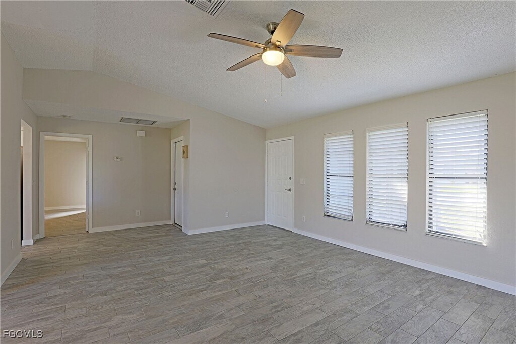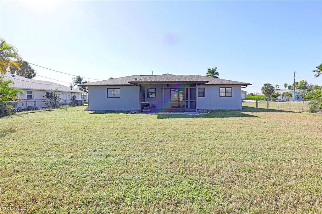 Welcome to this charming 3-bedroom,2-bath home located in the heart of Cape Coral! This well-maintained property features an open floor plan with a vaulted living room ceiling,tile flooring,granite countertops throughout,and plenty of natural light. The kitchen offers stainless steel appliances and ample cabinet space,perfect for everyday cooking. The split-bedroom layout provides privacy,with a spacious primary suite featuring a walk-in shower. Enjoy outdoor living in the screened lanai overlooking the large fenced backyard. Additional features include a two-car garage,fresh interior paint,and updated fixtures. Conveniently located near shopping,dining,parks,and major roadways. Lawn care included. Pets considered with owner approval. Available for immediate occupancy — don’t miss this centrally located Cape Coral gem.