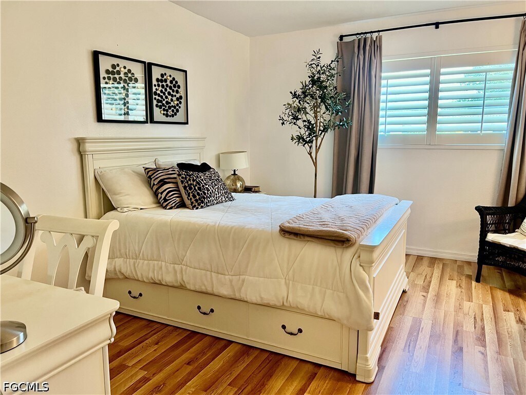 Step inside & be greeted by updated luxury plank vinyl floors throughout the kitchen,great room & baths; newer carpet in bedrooms! The kitchen offers stainless steel appliances,plus pass-through window to dining area. Spacious great room opens to lanai (w/ updated HURRIANE RATED WINDOWS & tile floors),that overlooks a quiet landscaped area; the perfect place to enjoy your morning coffee or quiet evenings. Large master suite w/ 2 closets,plus updated vanity,light fixture,shower door & toilet. Plantation shutters,6 panel doors & 5 1/4 in baseboards throughout. Split plan with ample privacy! Plus,the unit comes with a carport space w/ 3x10 (approximate) storage closet! Community is in great shape! Just off McGregor Blvd & positioned off College Pkwy & Cypress Lake Dr.,you'll LOVE this location! Close to the beaches of SWFL,shopping,dining,grocery stores,River District & ALL THAT SW FLORIDA has to offer!