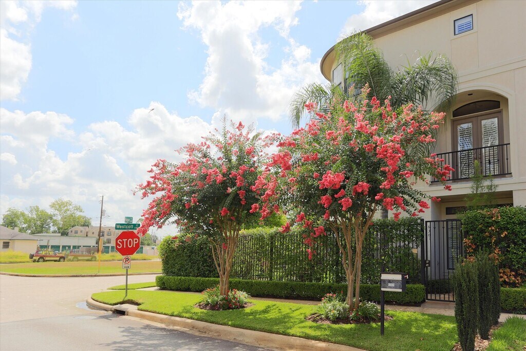 Camp Logan fully fenced corner town home is flanked by gorgeous and lush landscape with flagstone patio upon entry. Gated driveway provides additional security and guest parking. All bedrooms offer en-suite baths and terrific storage. Spacious open floor plan provides ample room to entertain family and friends. Amenities include: granite counters; loads of windows flanked with plantation shutters; hardwoods and slate flooring; high ceilings; surround sound through-out; central vac; water softener and sprinkler system. With close proximity to Memorial Park and an easy commute to Downtown,Medical Center,Galleria and around town,the location is hard to beat! MLS# 79393655